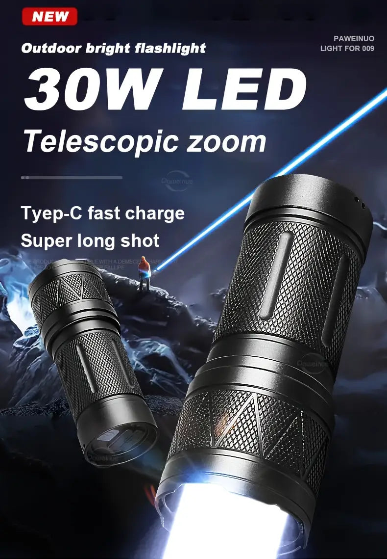 Super Bright LED Flashlight 12000mAh Rechargeable Battery Handheld Torch for Home Security Safety and Outdoor Use