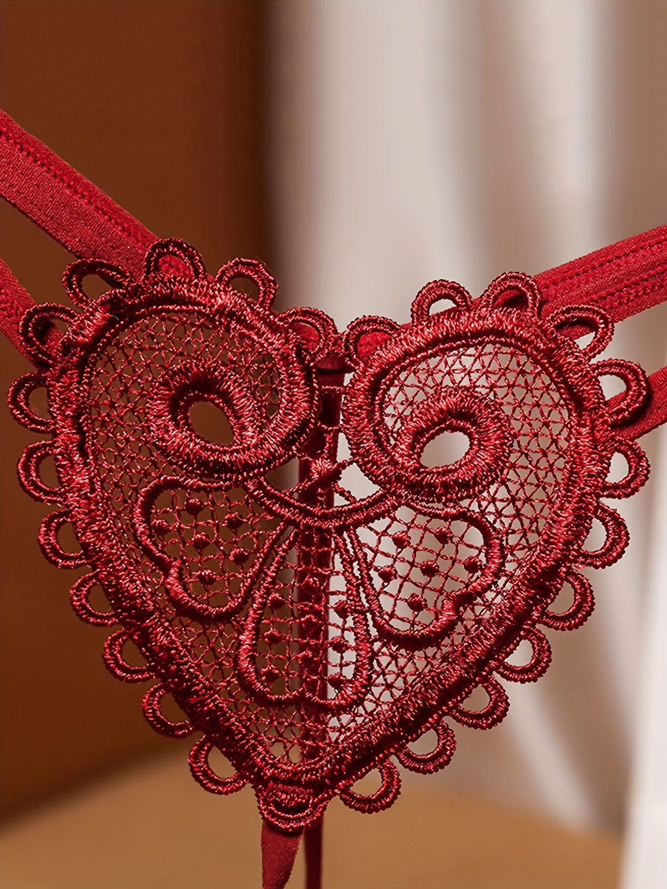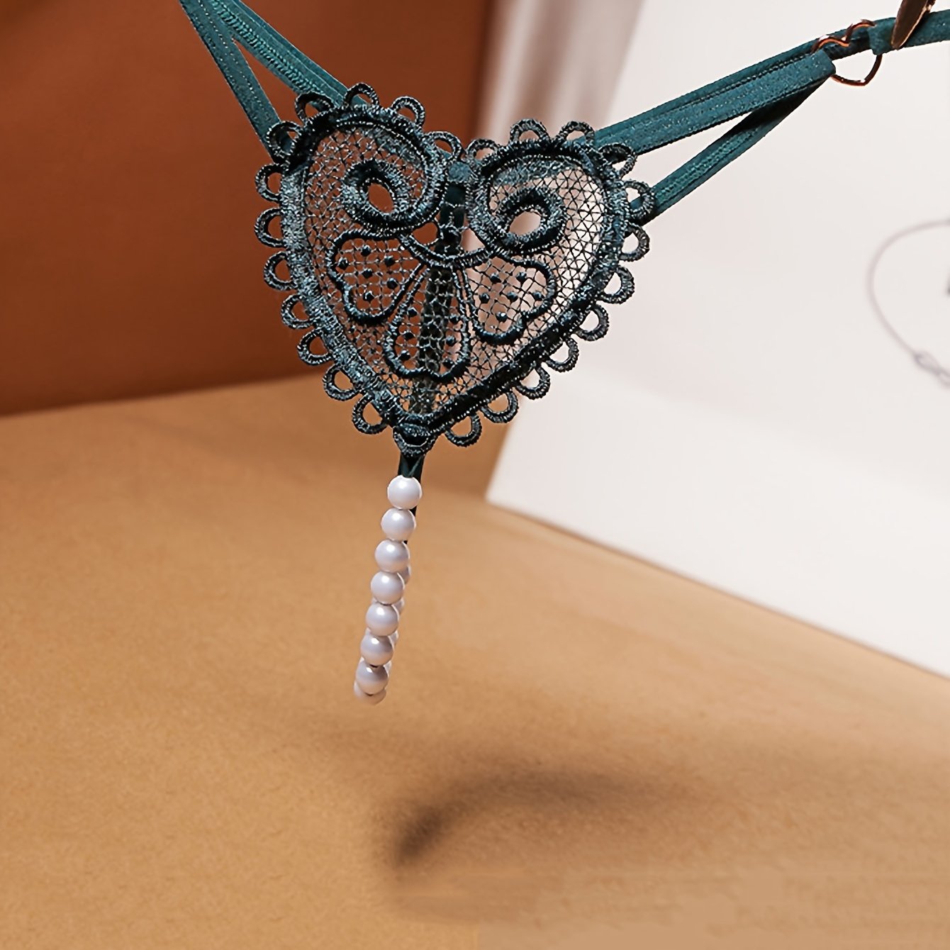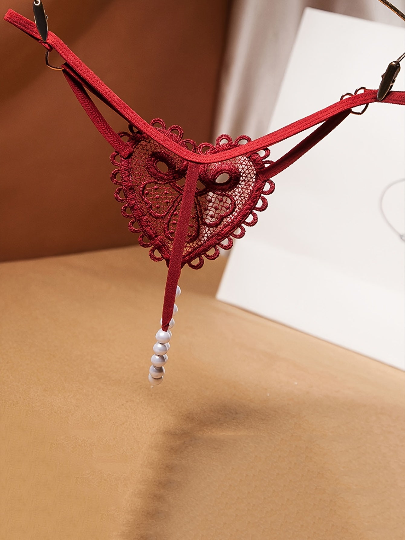 Women's Low Waist Pearl Thong with Heart-Shaped Hollow Out Design Soft Breathable Lingerie