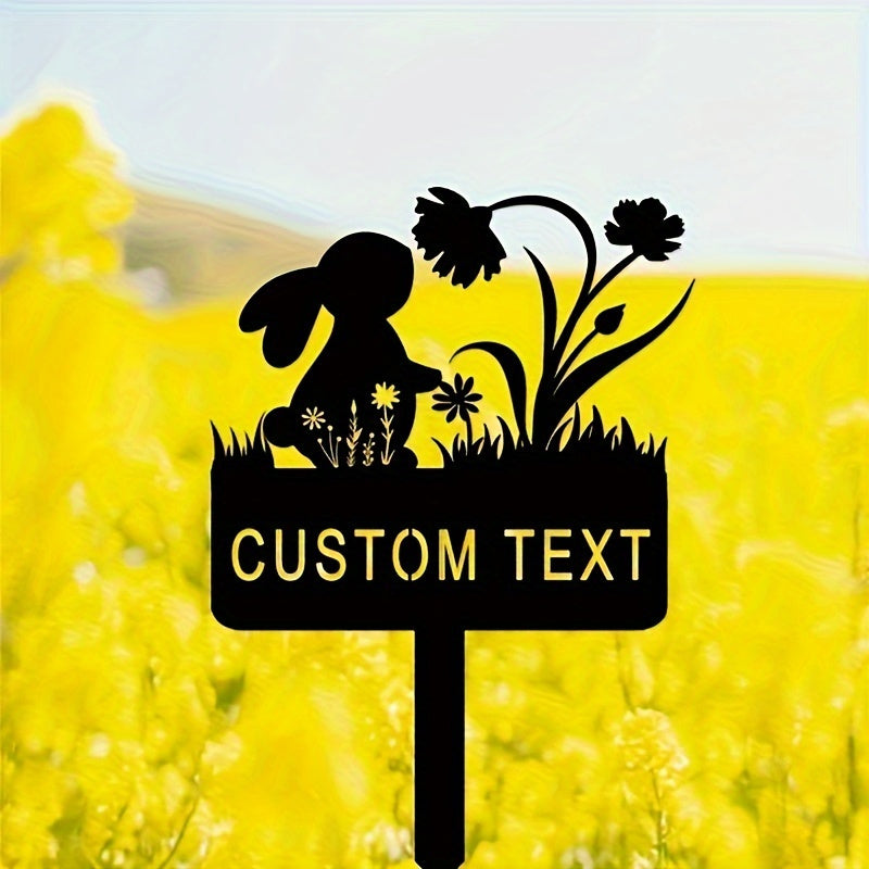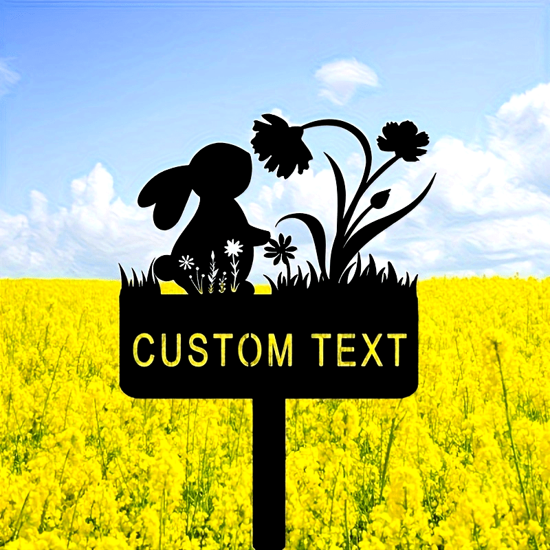 Black Metal Rabbit Garden Stake Outdoor Memorial Marker Sturdy Decorative