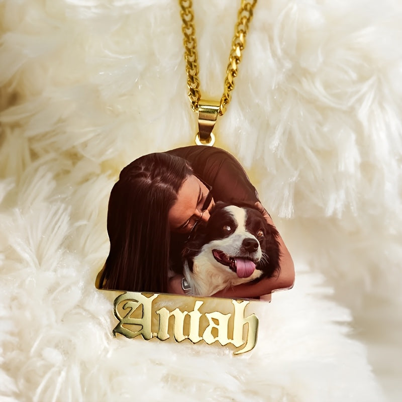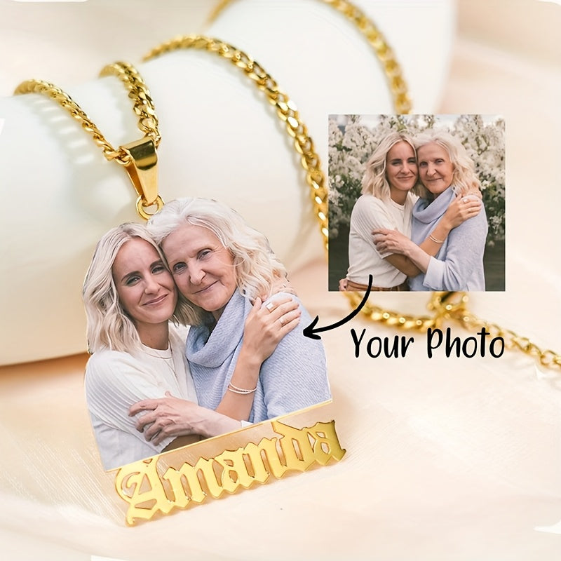 Personalized 18K Gold Plated Stainless Steel Photo Necklace with Engraved Name for Mothers Day Fathers Day Christmas