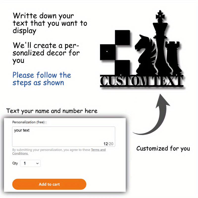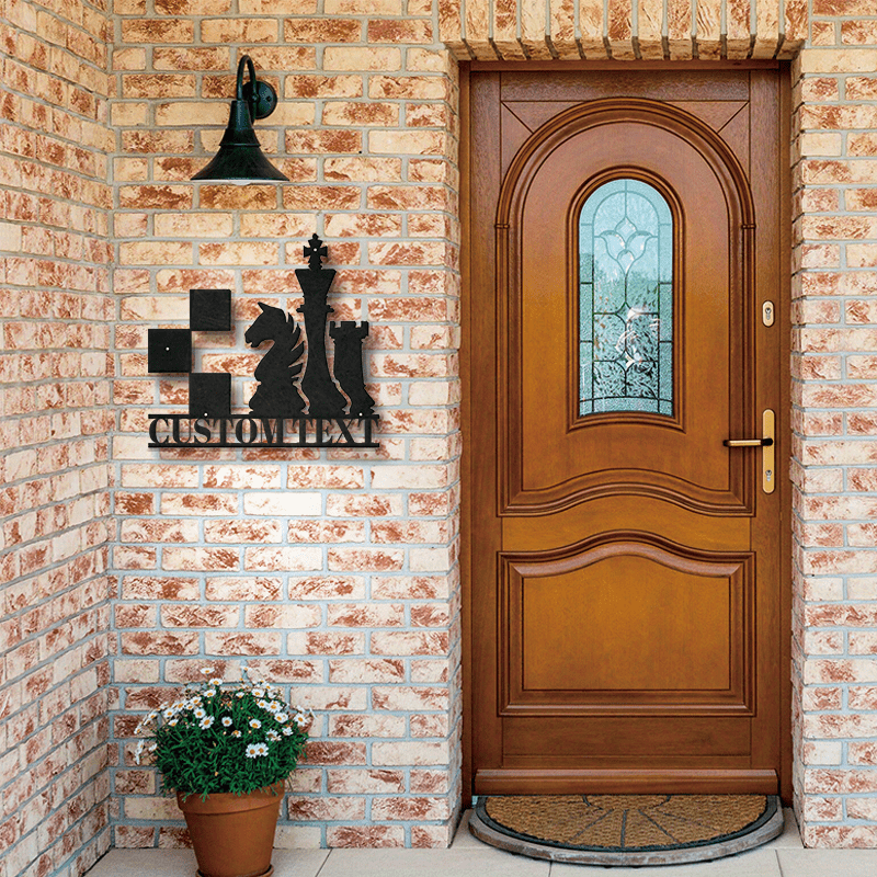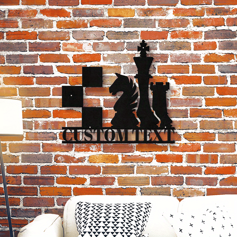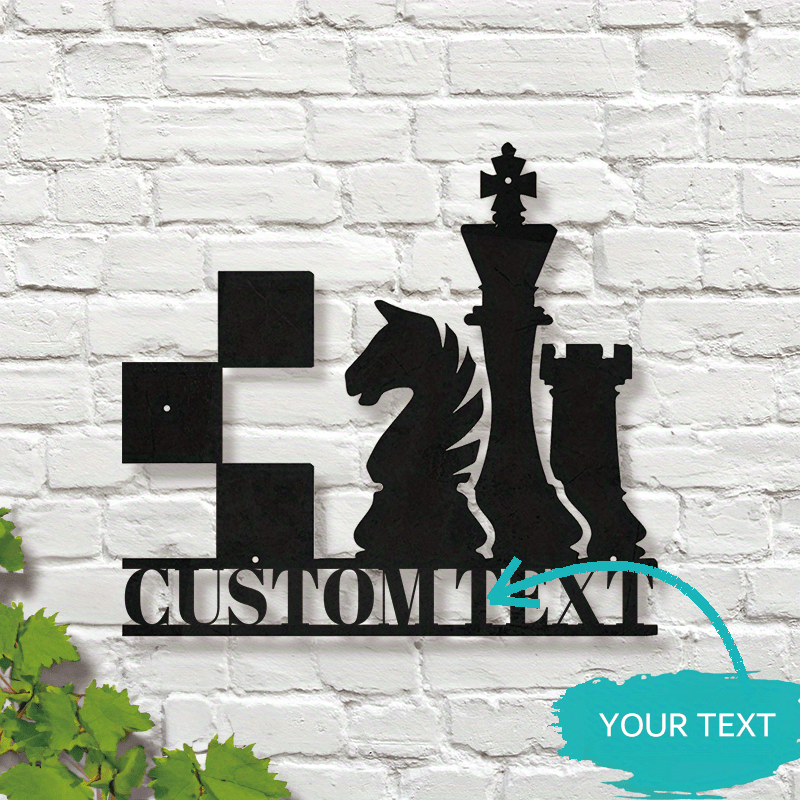 Personalized Black Metal Chess Piece Wall Decor Customizable Hanging Sign for Home