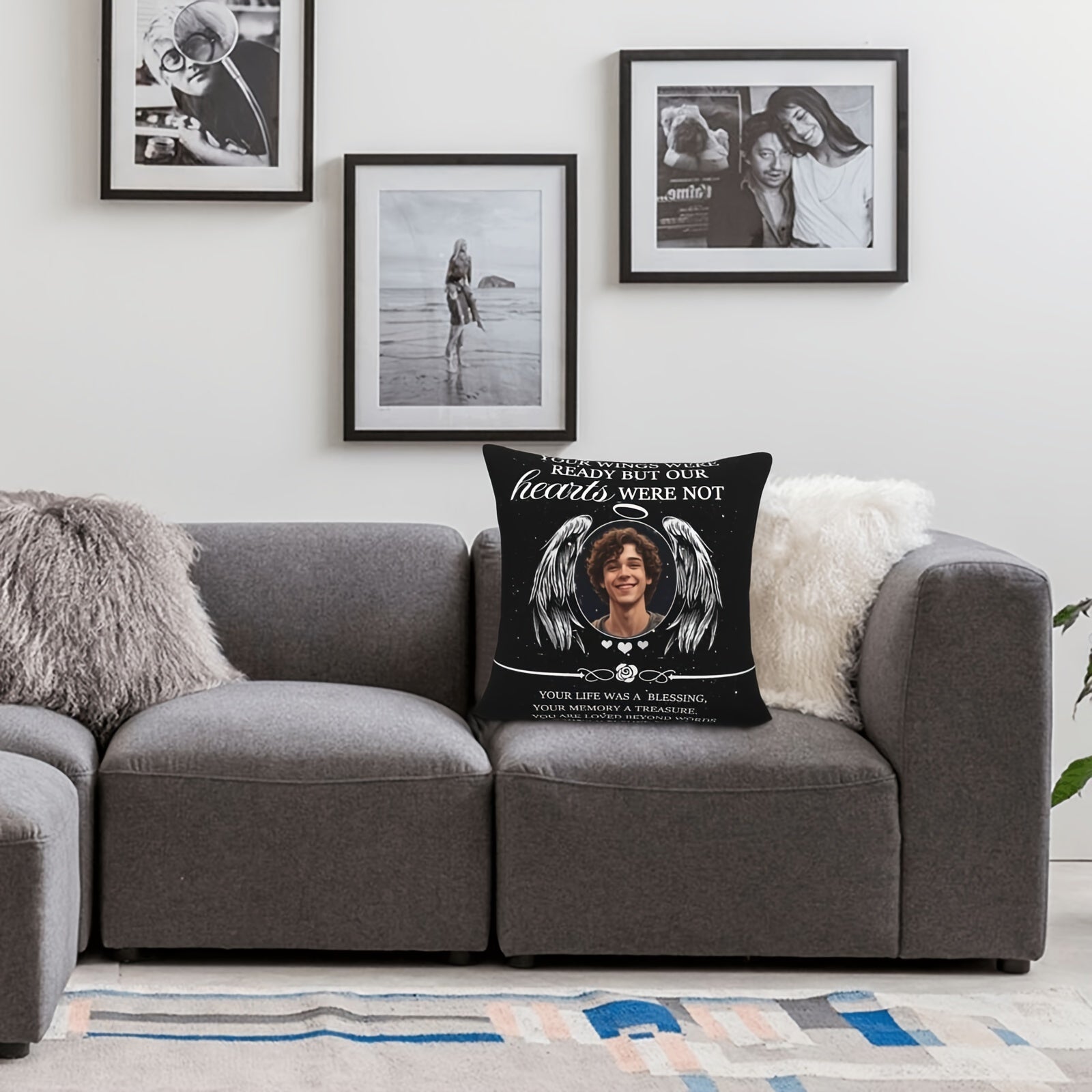 Personalized Memorial Pillow with Angel Wings Design Custom Photo Pillowcase Sentimental Memory Pillow for Adults