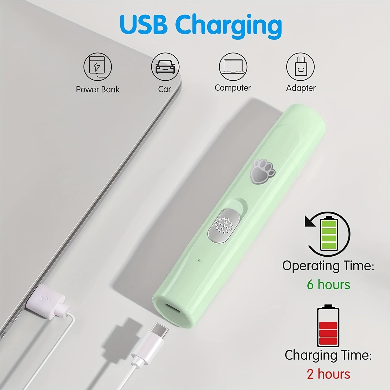 Electric Dog Nail Grinder 2-Speed Rechargeable Quiet Pet Nail Trimmer for Cats and Dogs