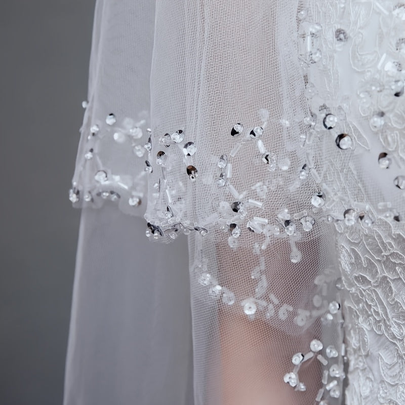 Women's White Head Veil with Comb and Sequins Edge for Wedding Bridal Accessories