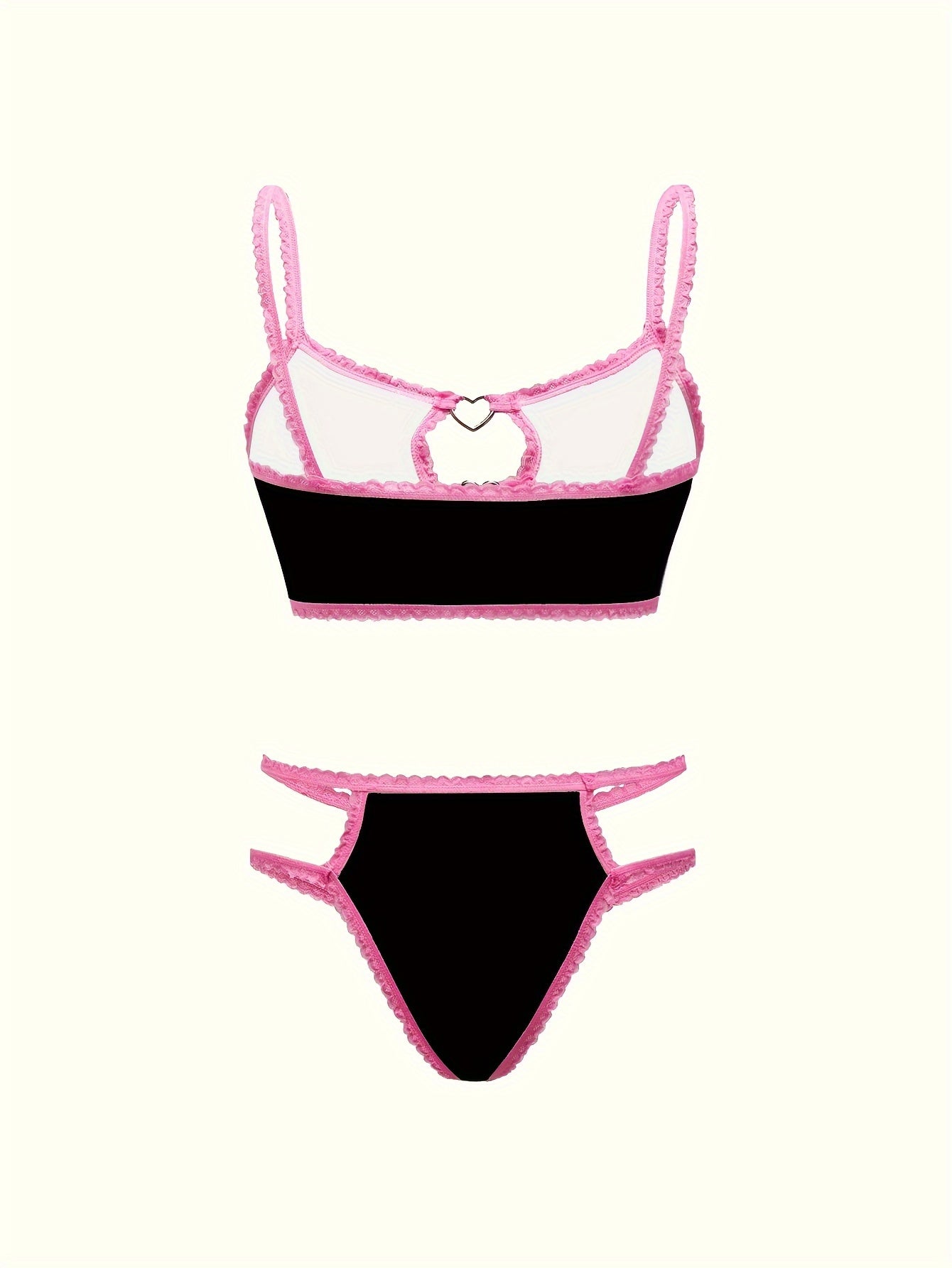 Pink Lace Lingerie Set with Rabbit Print Bra and Panties