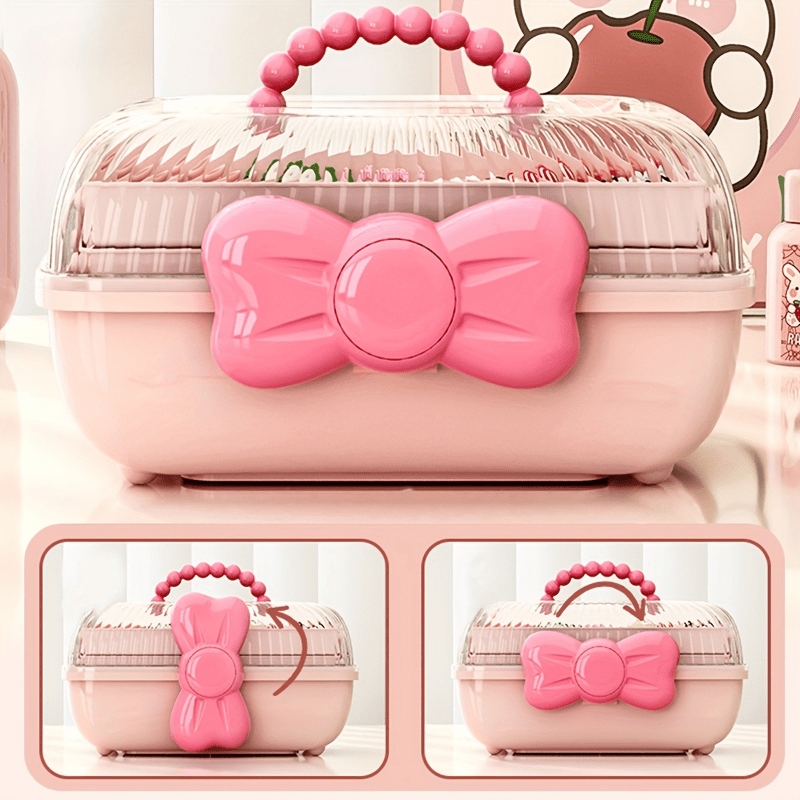 Pink Multi-Layer Storage Box with Bow for Jewelry Cosmetics and Toys