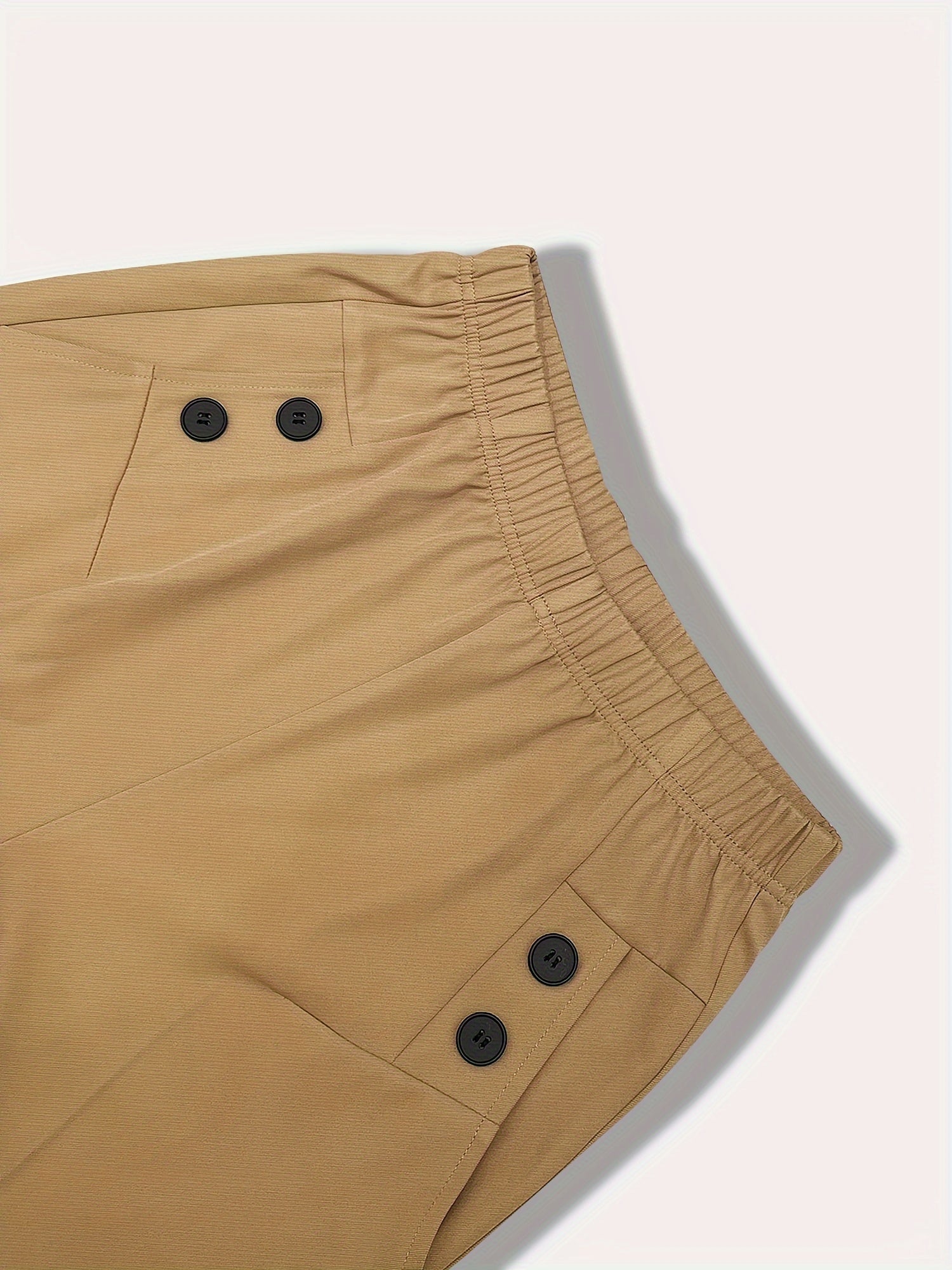 Women's Plaid Print Woven Trousers with Elastic Waist and Button Decor for Work