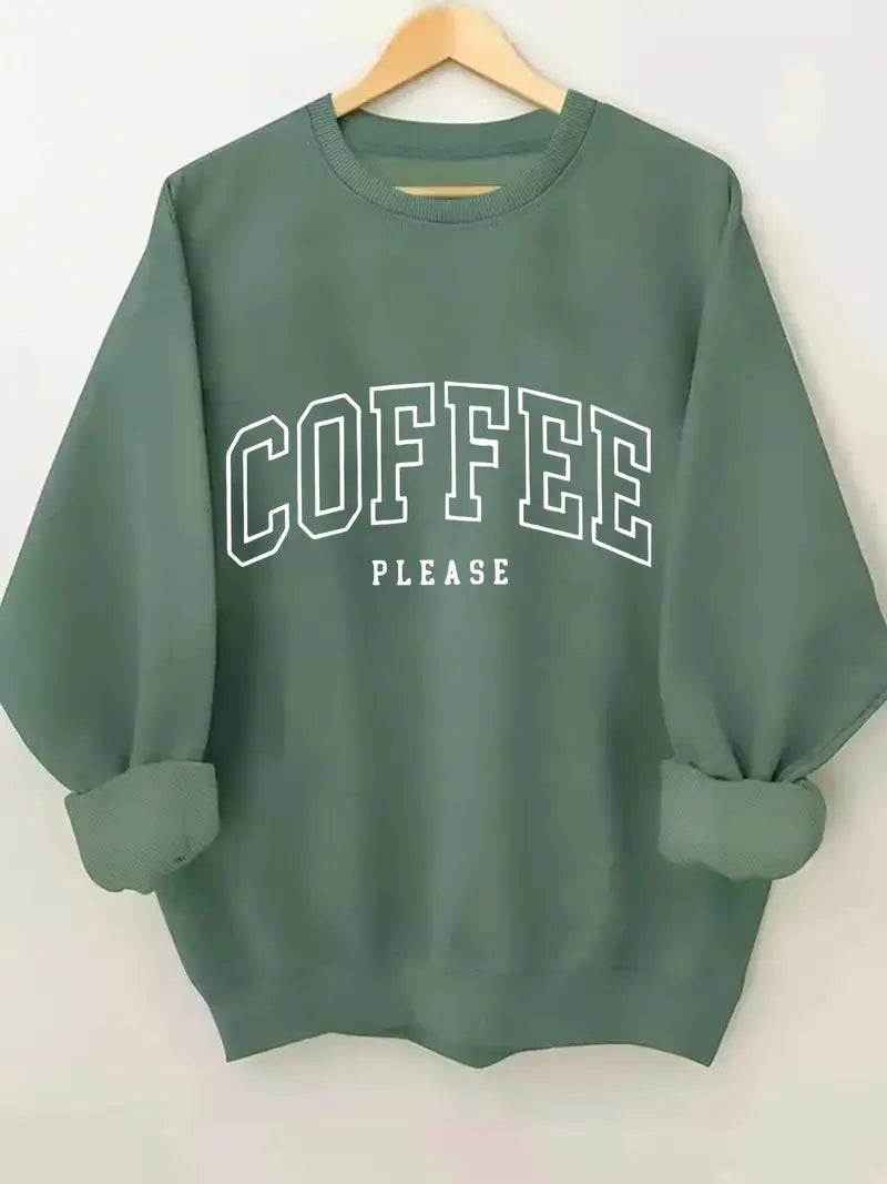 Plus Size Coffee Print Pullover Sweatshirt Long Sleeve Casual Fall Spring