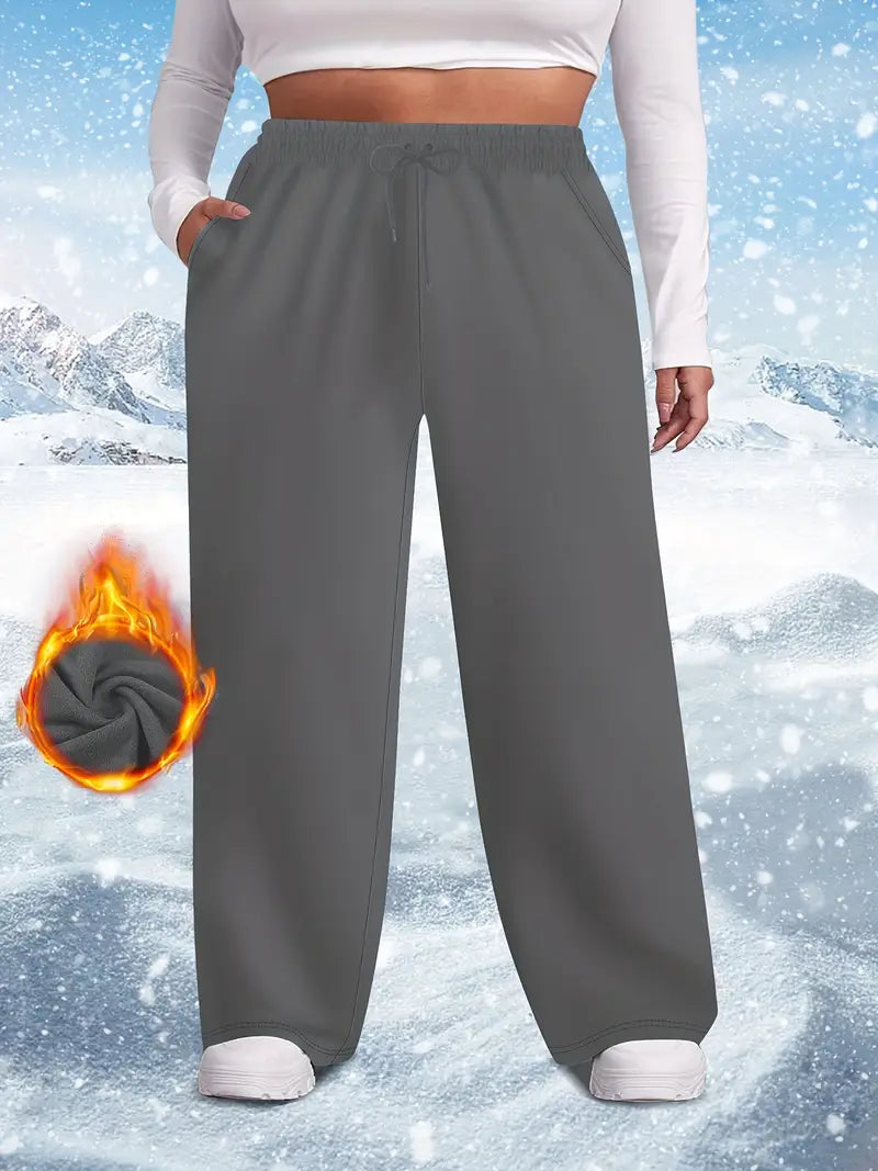 Plus Size Fleece Pants With Drawstring Waist Casual Loose Pants Women Fall Winter