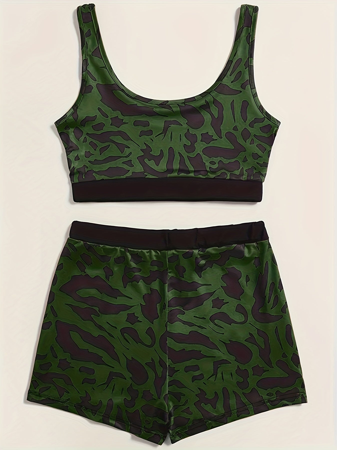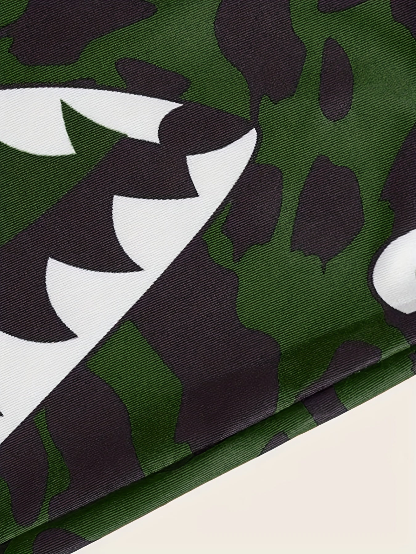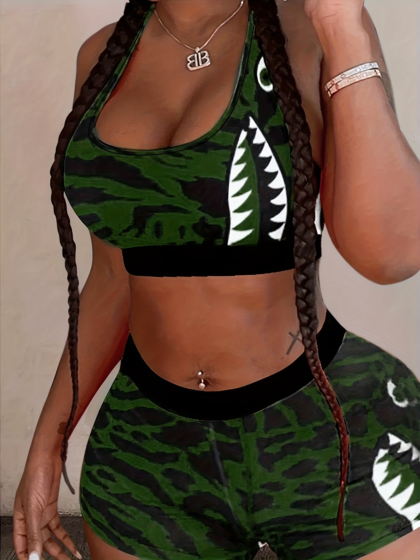 Plus Size Gothic Lingerie Set Women's Shark Print Contrast Trim Tank Bra & Panty
