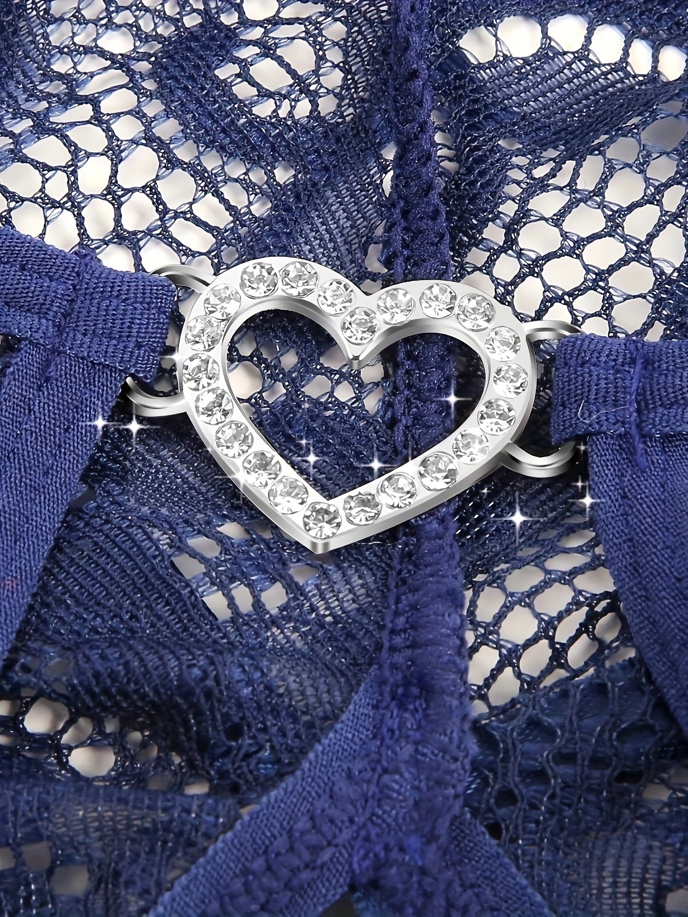 Plus Size Lace Bodysuit Women's Crotchless Halter Teddy with Rhinestones