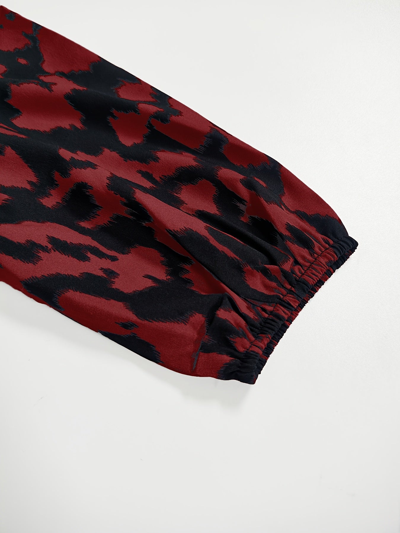 Plus Size Leopard Print Tie Neck Blouse Long Sleeve Spring Fall Women
