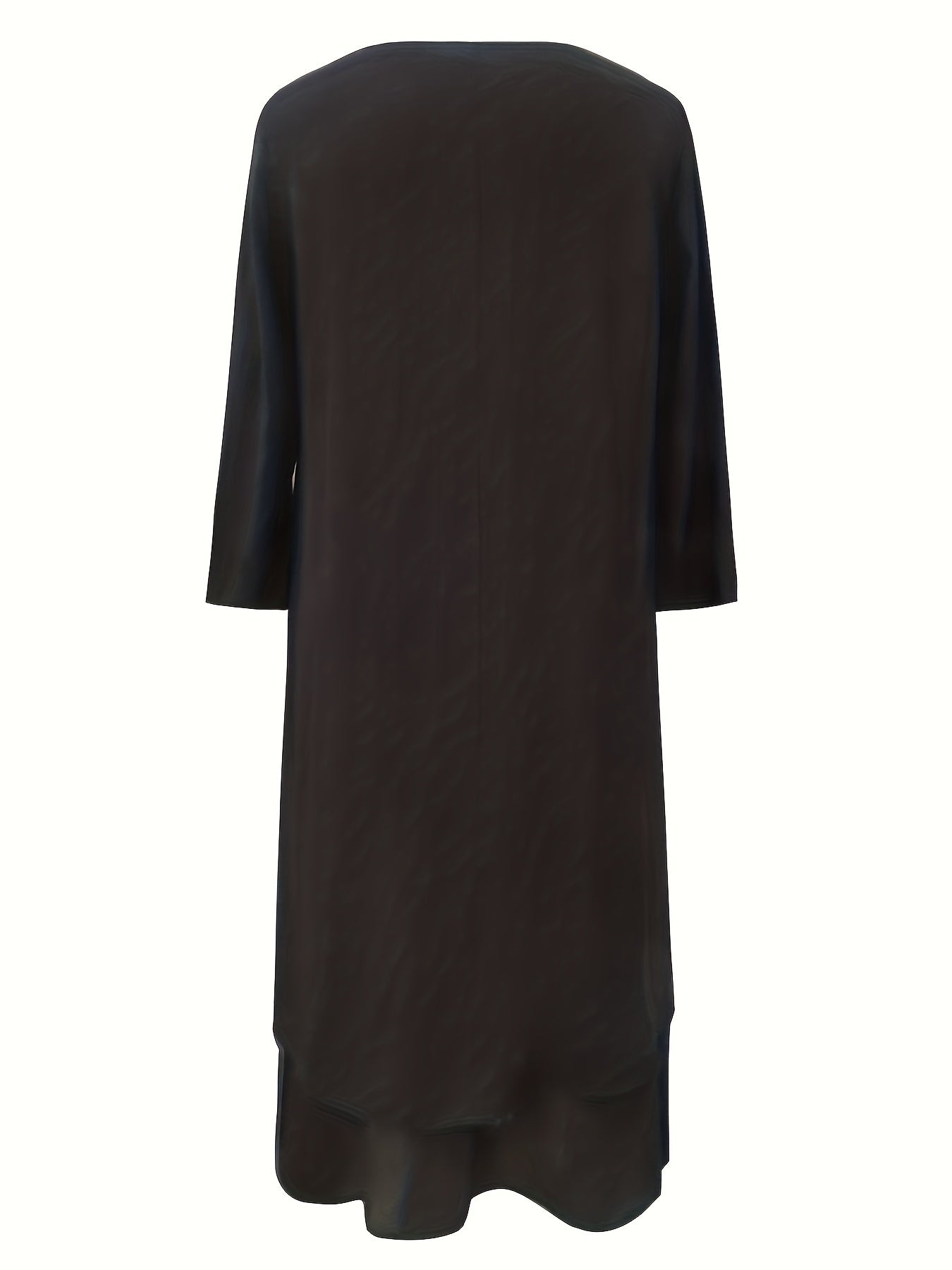 Plus Size Long Sleeve Layered Hem Dress for Spring Fall Casual Woven Rayon Solid