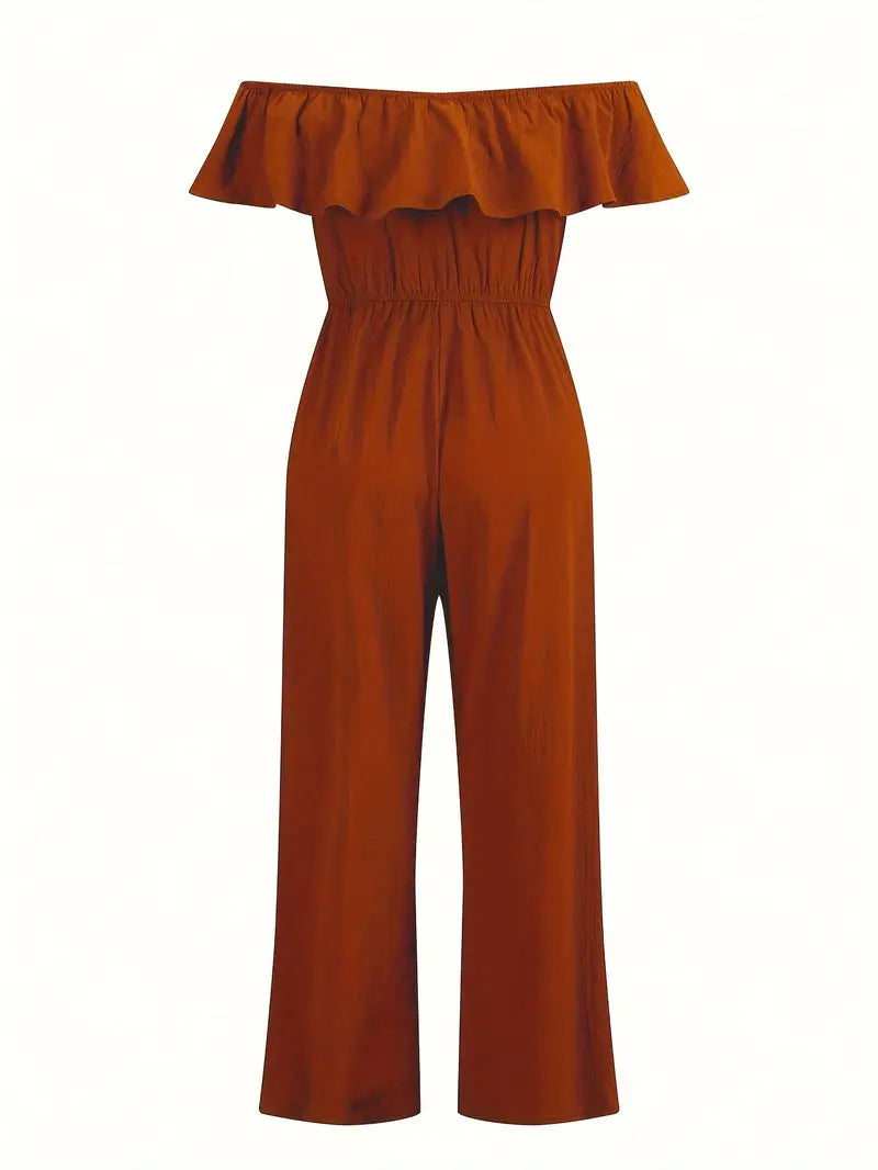 Plus Size Olive Green Off-Shoulder Jumpsuit Wide-Leg Romper for Women