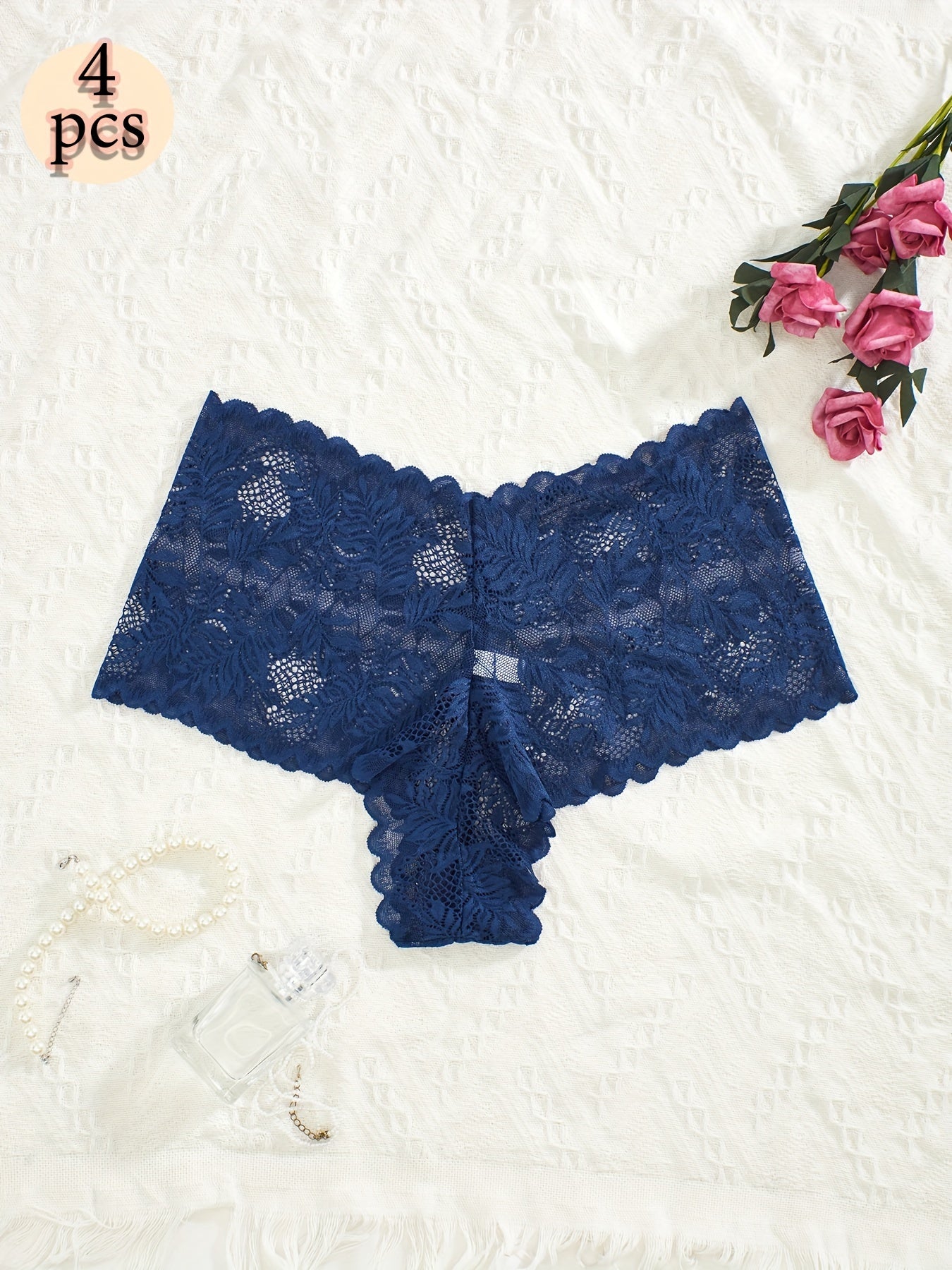 Plus Size Women's Lace Briefs 4 Pack High Stretch Solid Color Sexy Panties