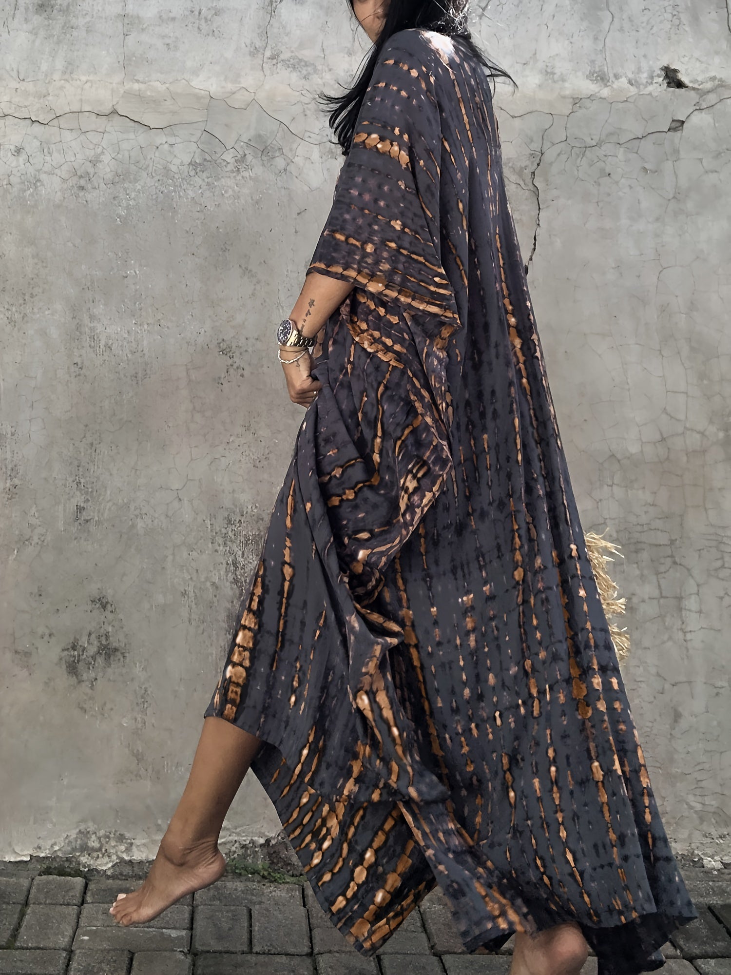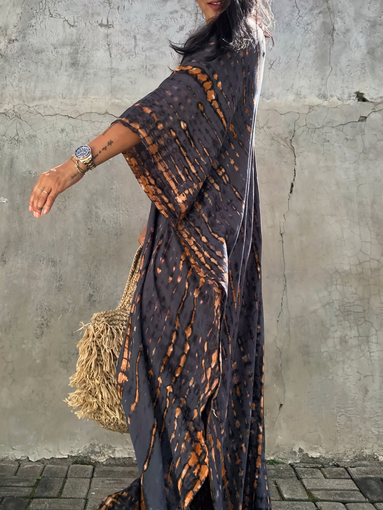 Plus Size Tie Dye Kaftan Dress Casual V Neck Batwing Sleeve