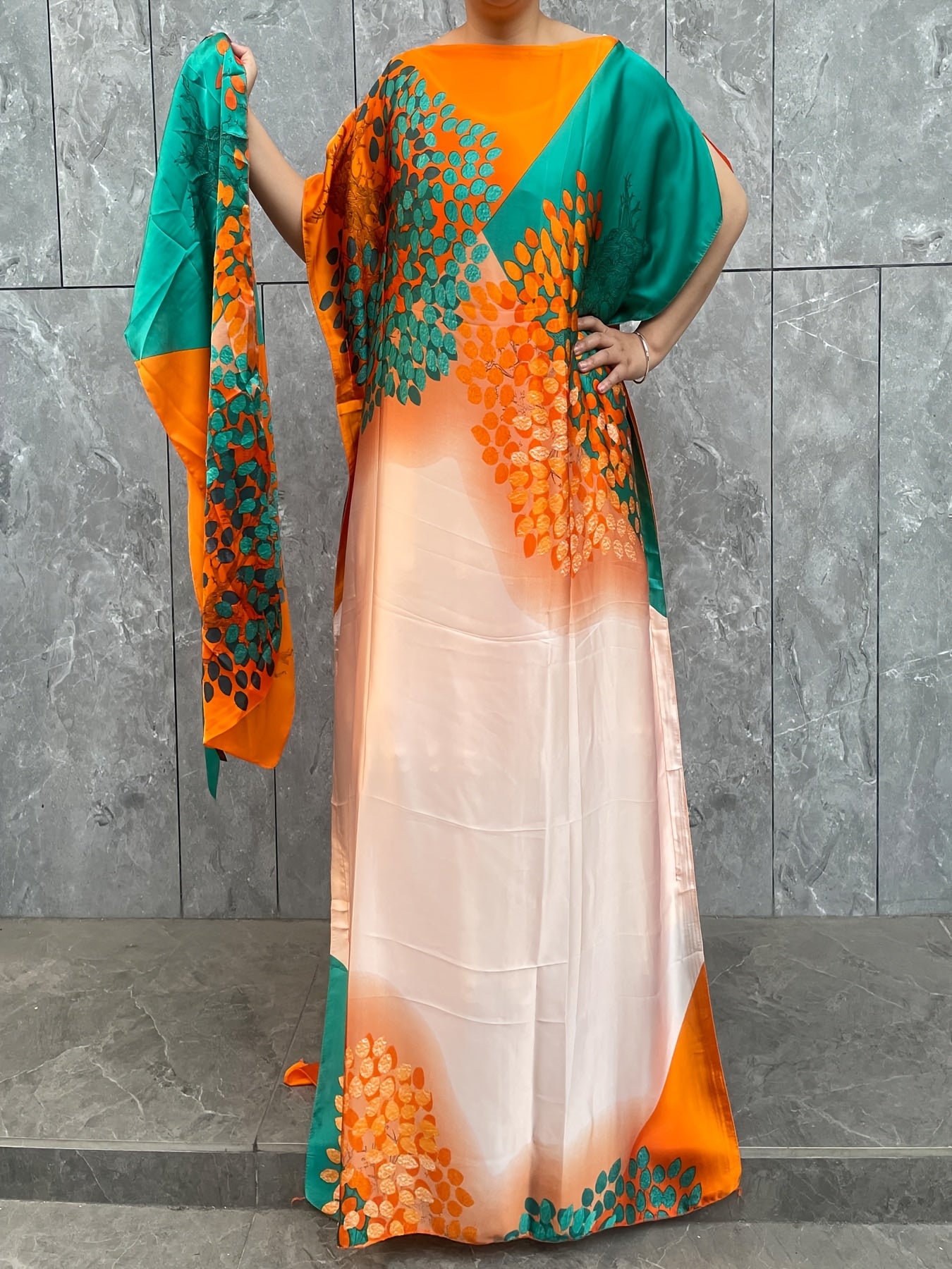 Plus Size Turkish Kafatan Robe With Scarf Geometric Pattern Polyester Middle Eastern Clothing