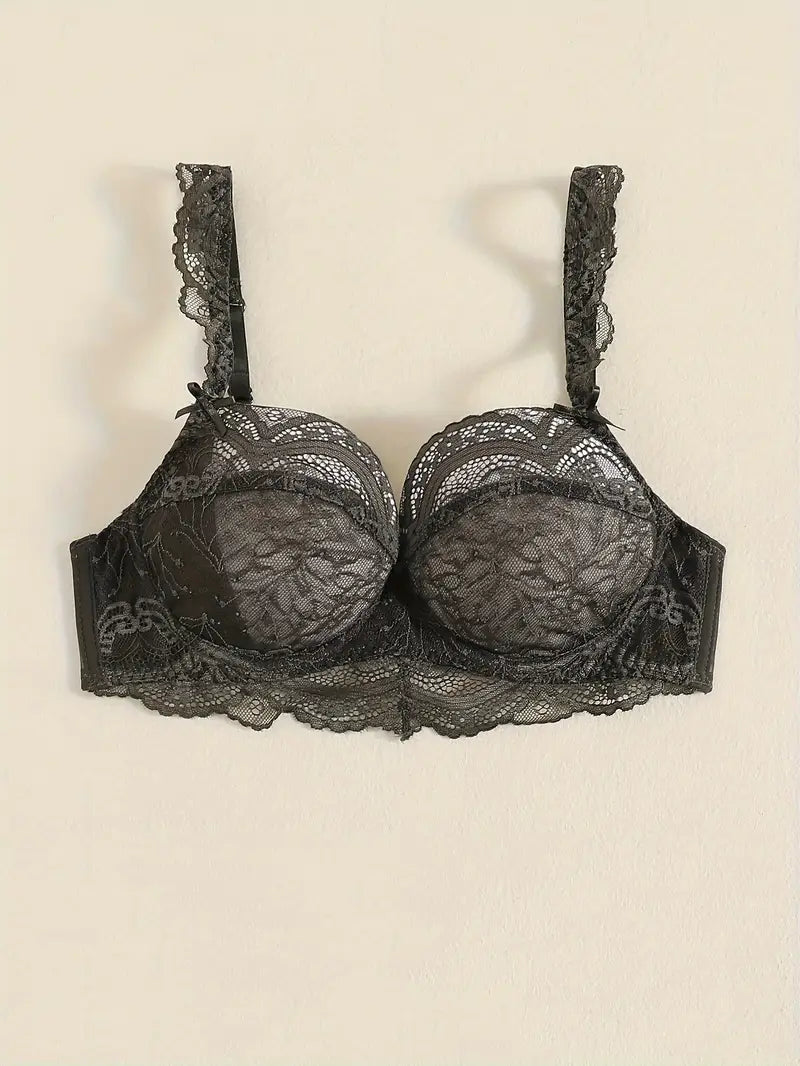 Plus Size Lace Lingerie Set with Bow and Spaghetti Strap Solid Color High Stretch