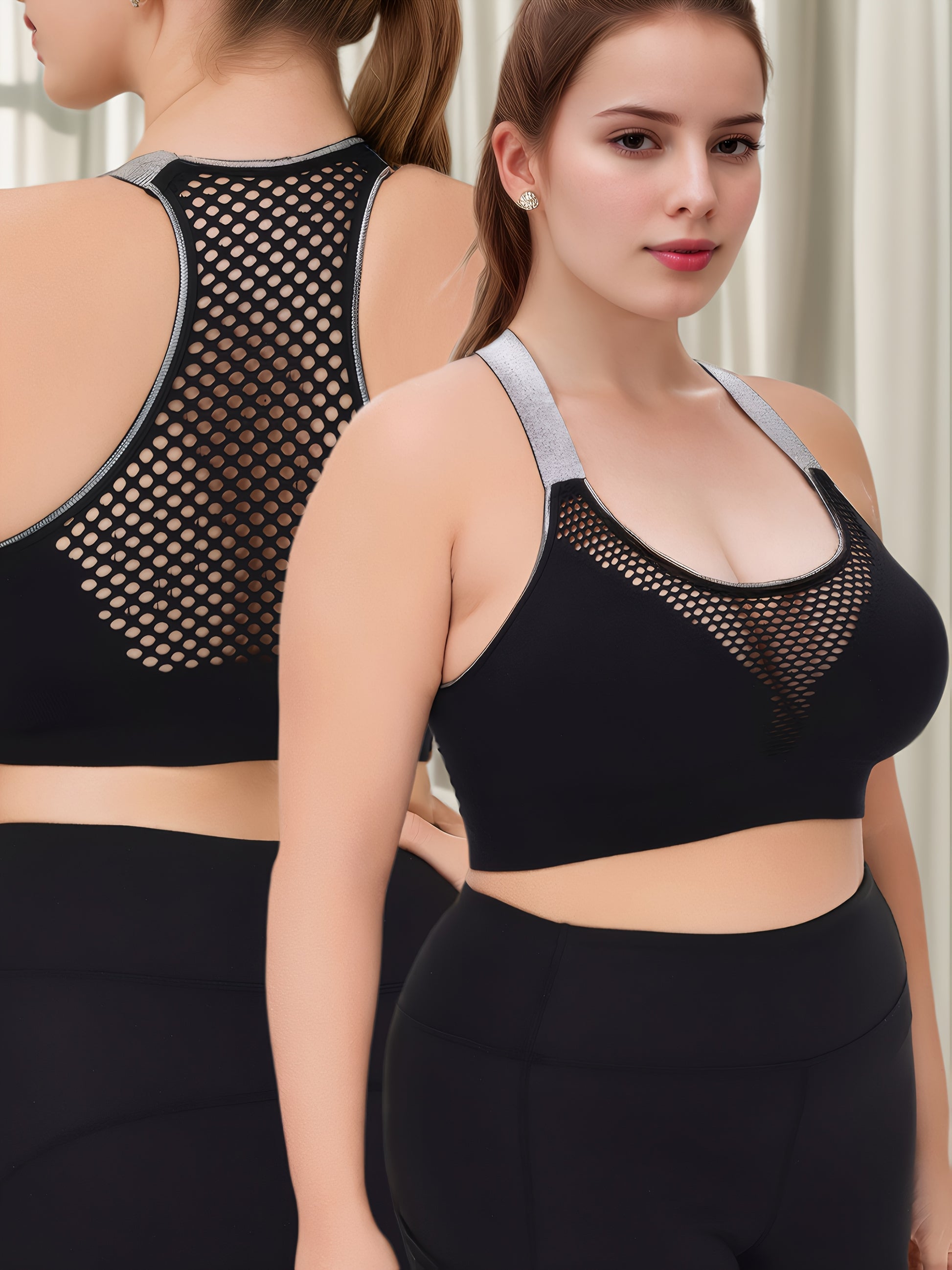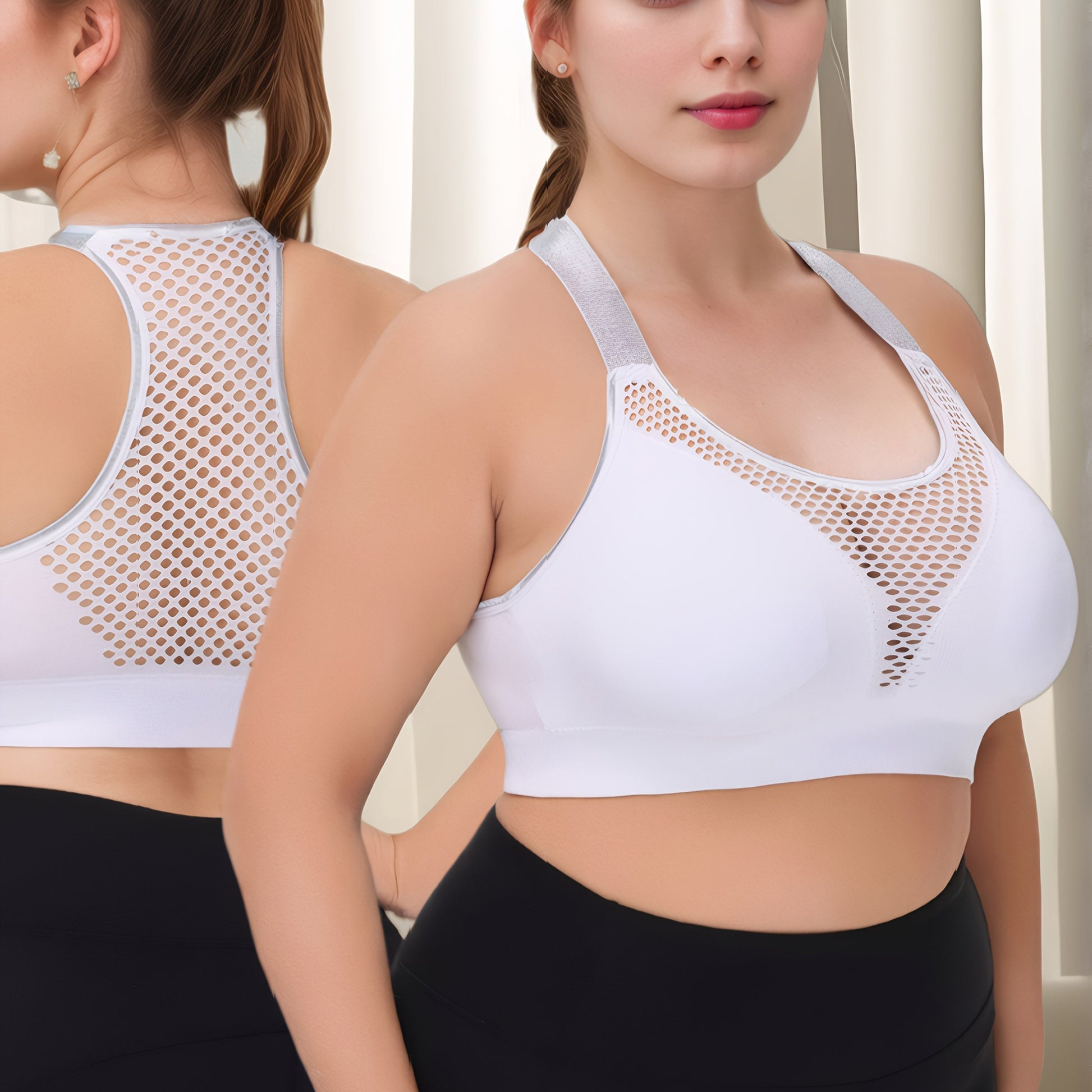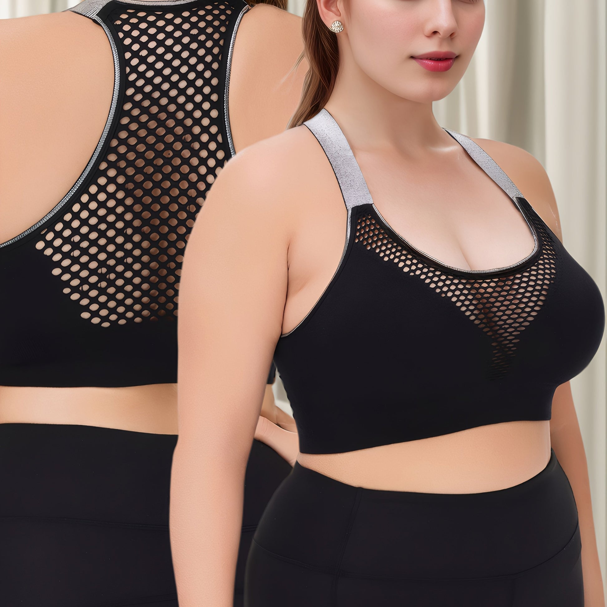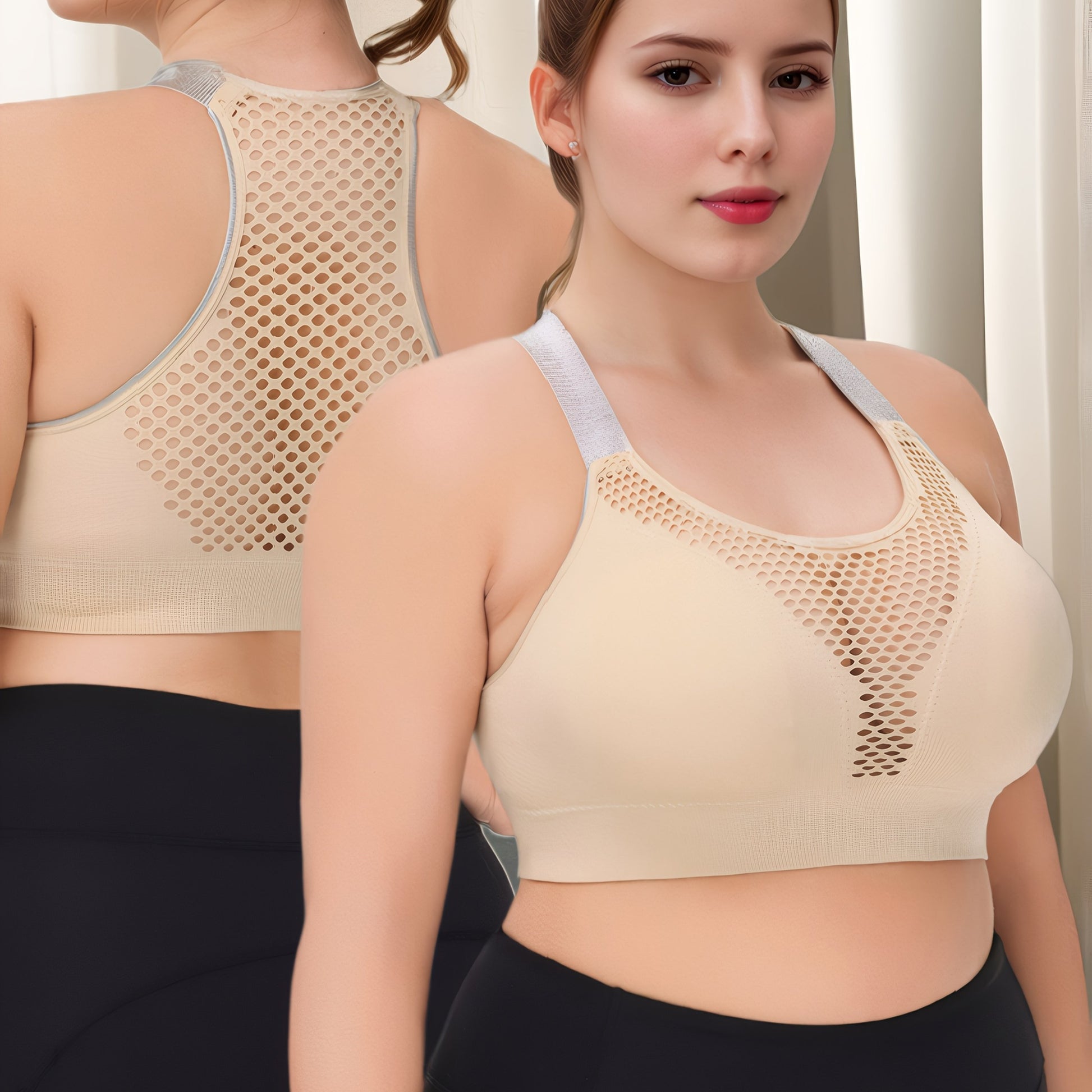 Plus Size Wire-Free Sports Bra Seamless Breathable Mesh Medium Support