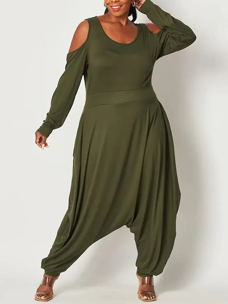 Plus Size Women Black Off-Shoulder Jumpsuit Long Sleeve Wide-Leg Casual Formal