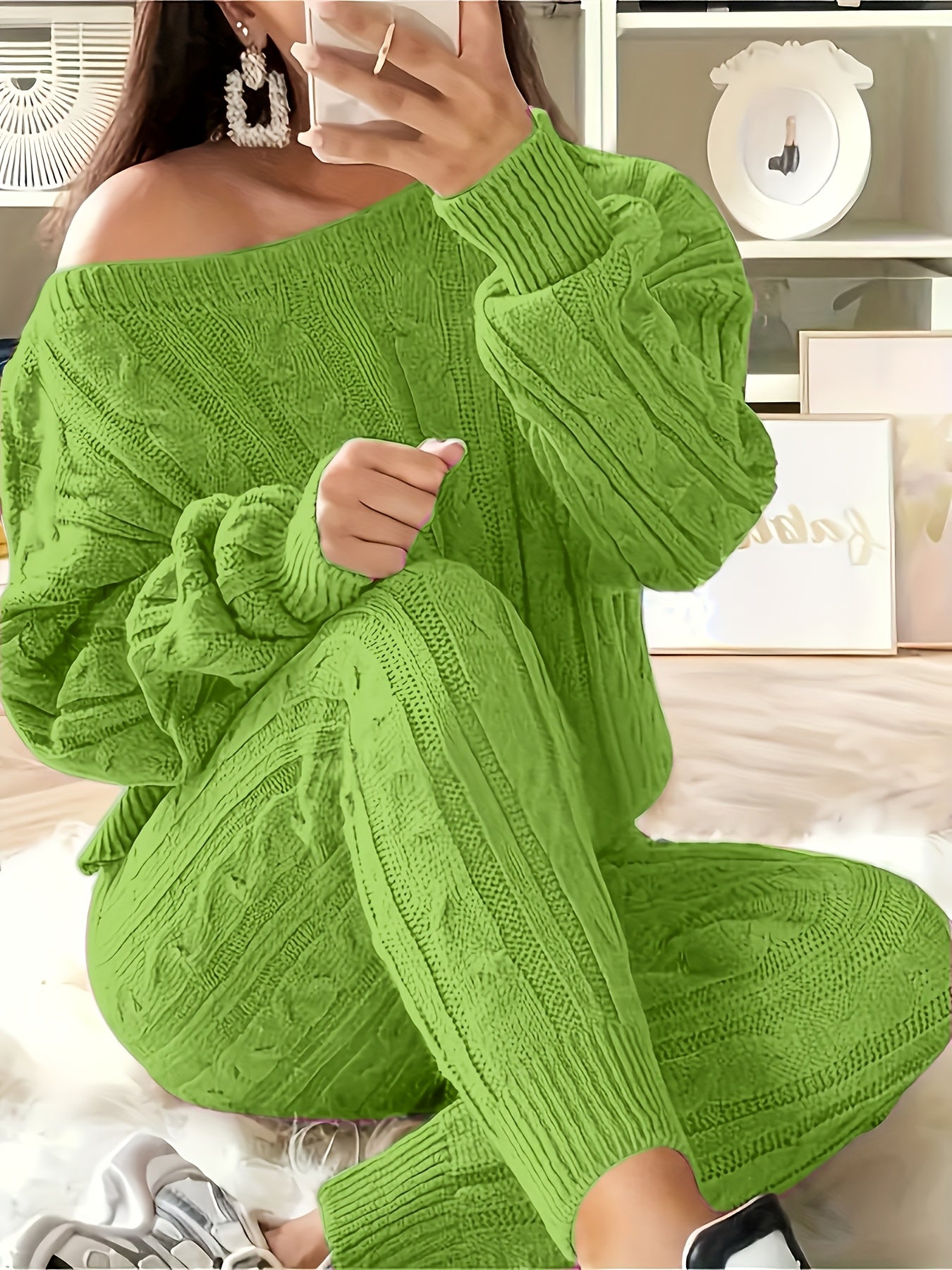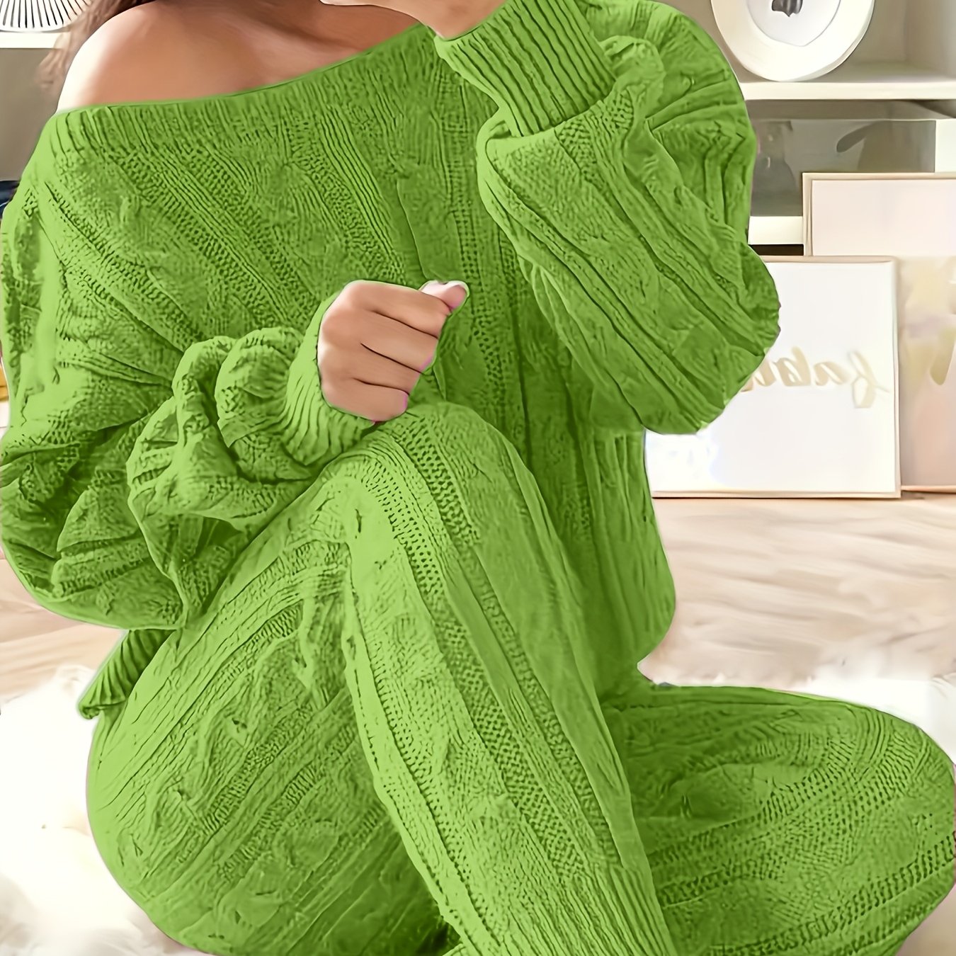 Plus Size Women Casual Sweater Pants Two-Piece Set Grey Large
