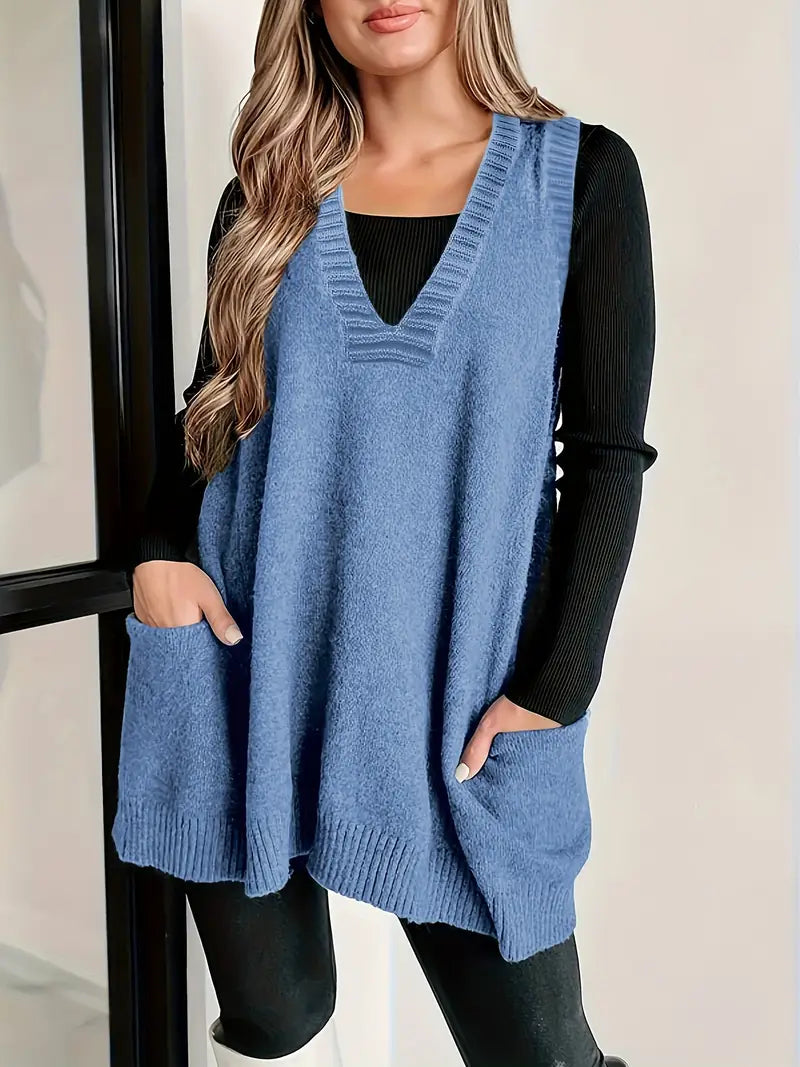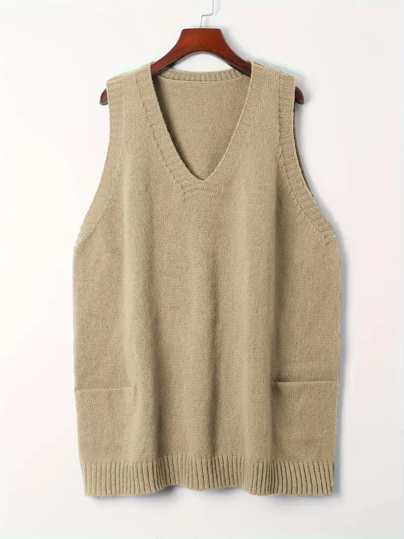 Plus Size Women Knit Sweater Vest Casual V Neck Sleeveless Fall Winter