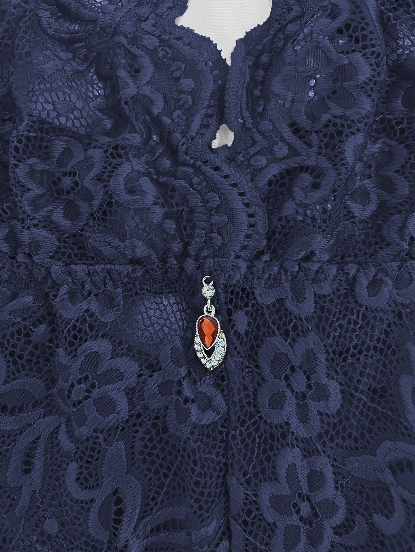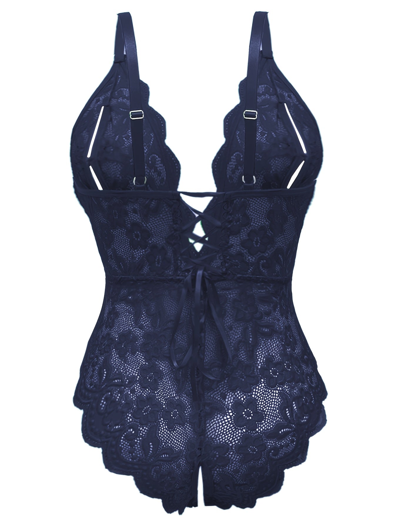 Plus Size Women Lace Bodycon Bodysuit Hollow-Out Contrast Sexy Constraints