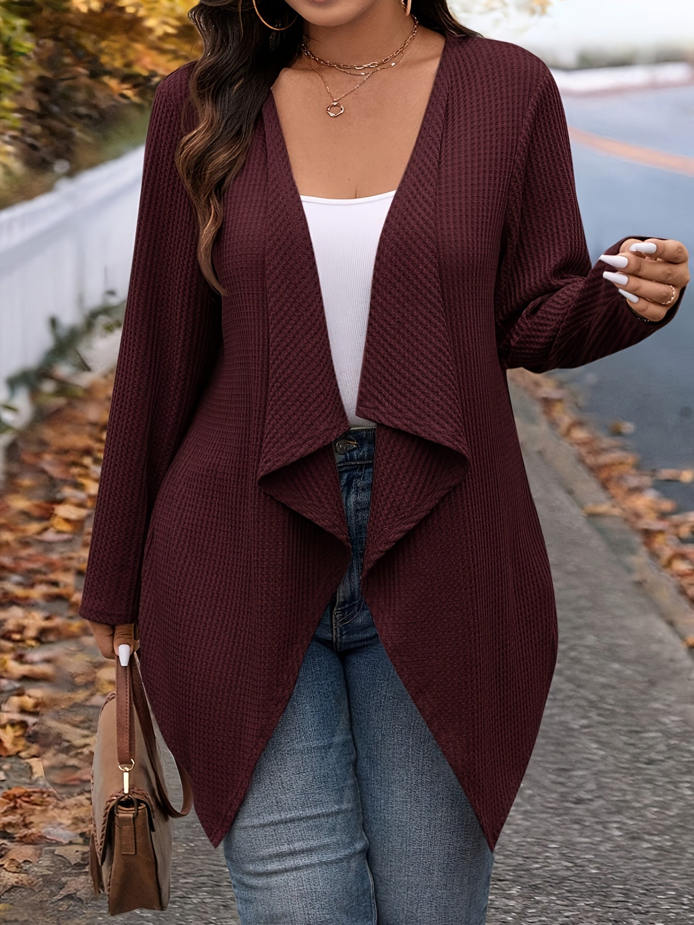 Plus-Size Women's Asymmetrical Hem Cardigan Long Sleeve Open Front Solid Color Layering