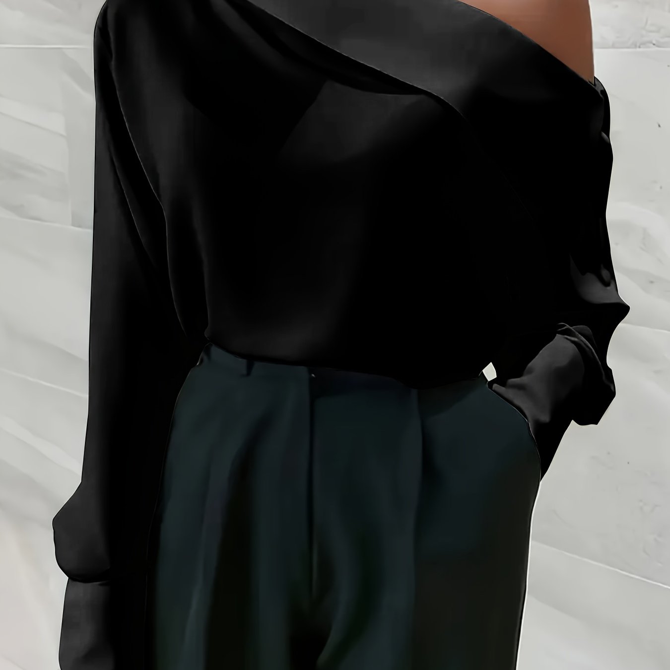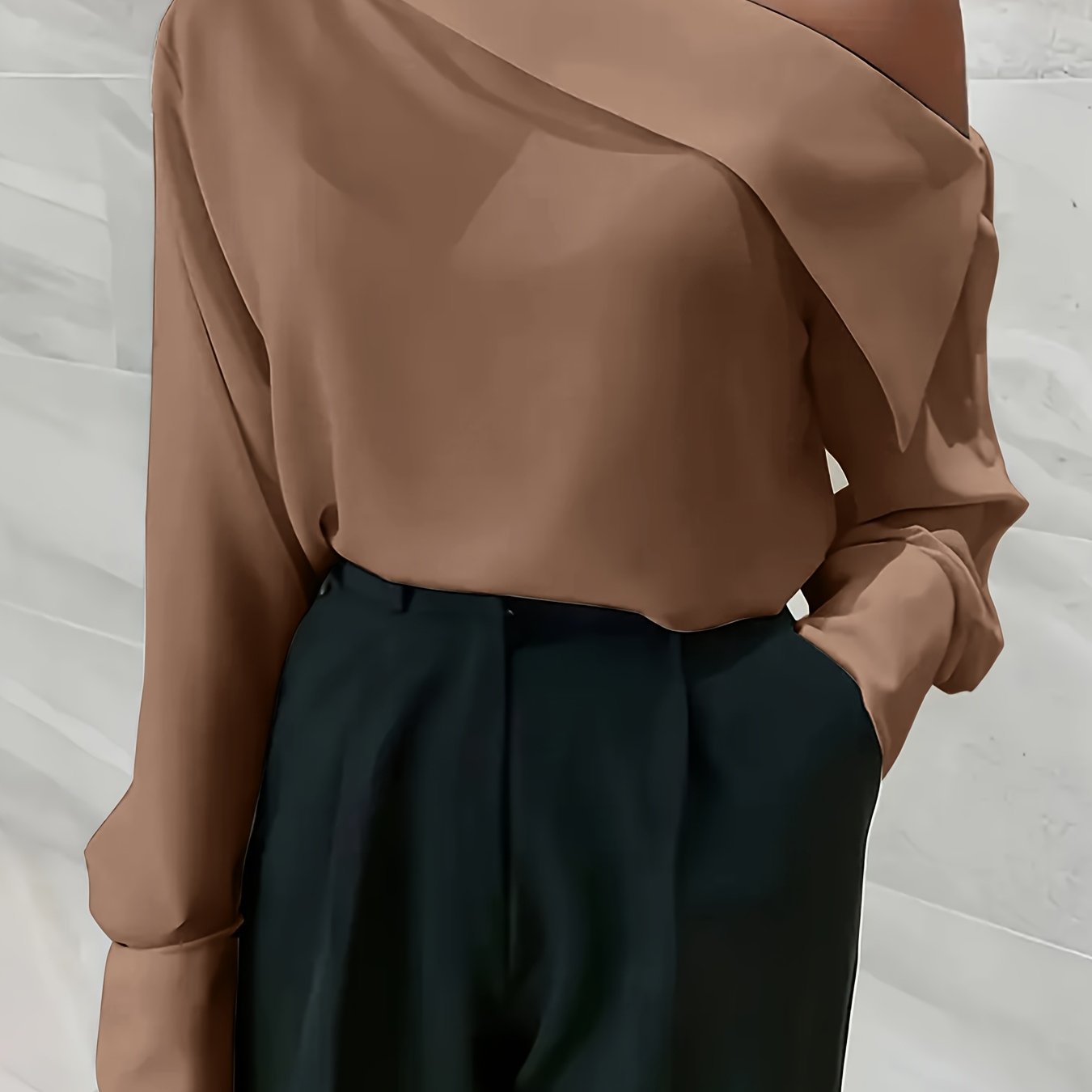 Plus-Size Women's Blouse Polyester One-Shoulder Long Sleeve Solid Color