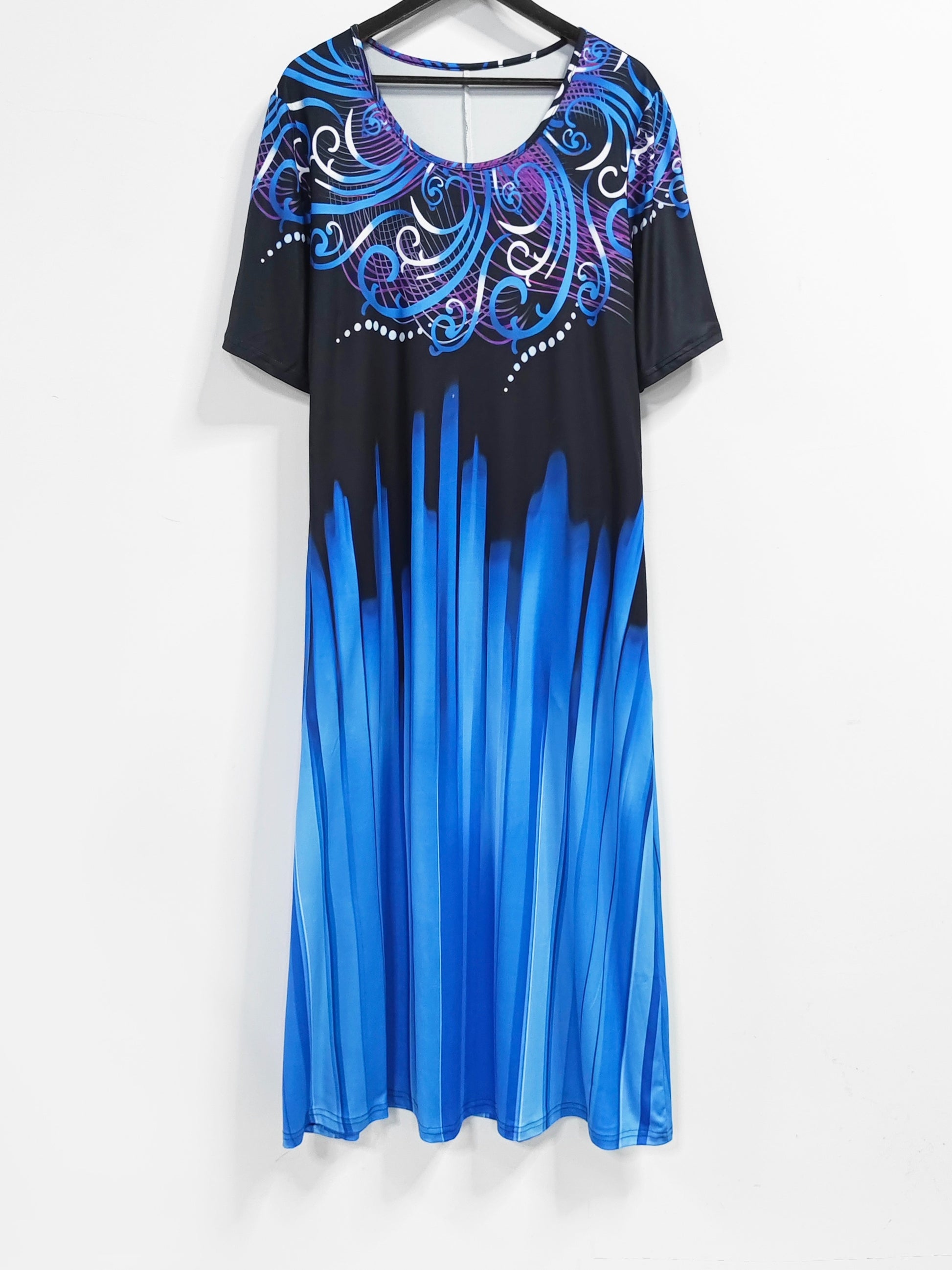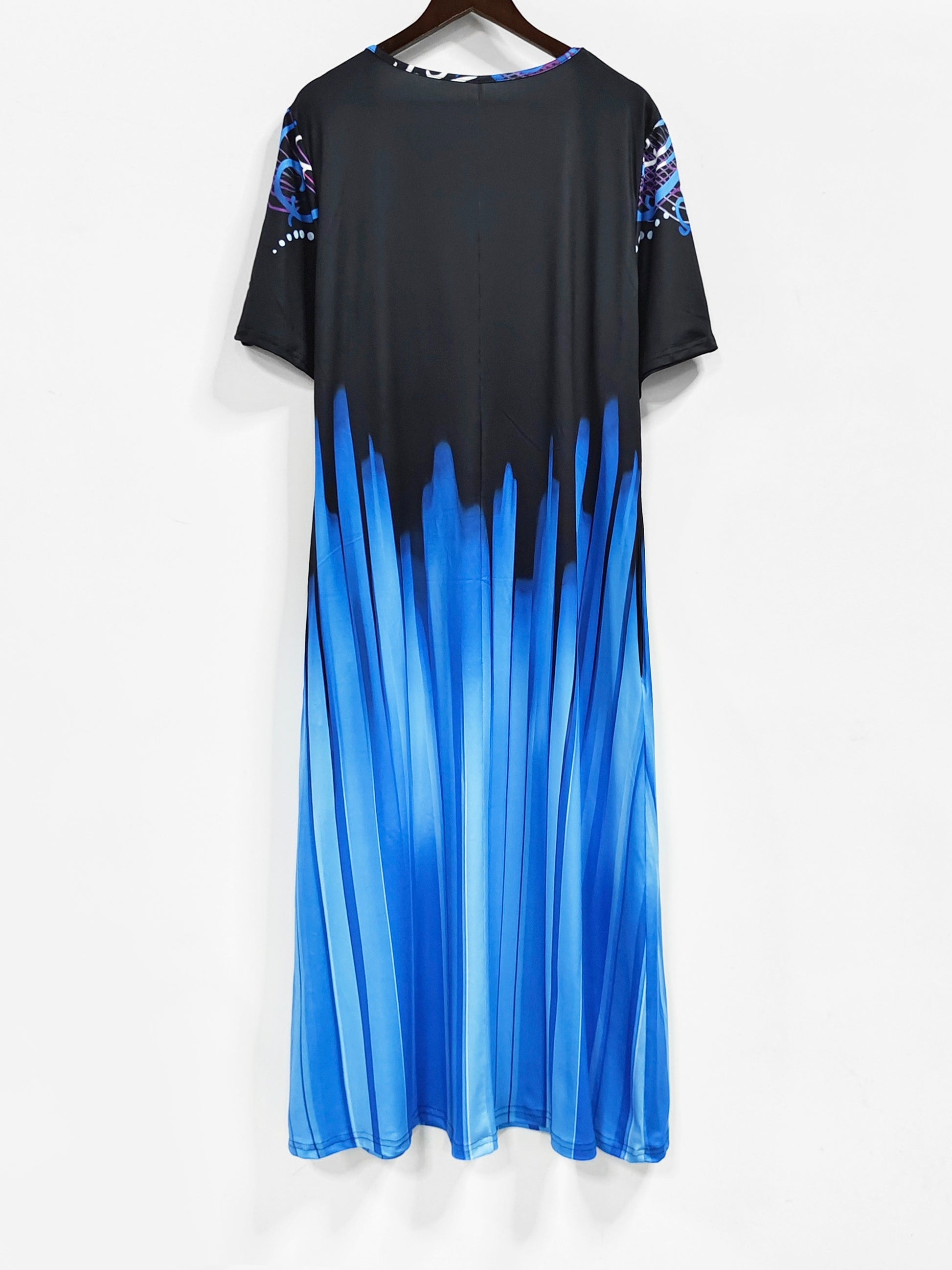 Plus Size Women's Maxi Dress with Pockets Floral Ombre Short Sleeve Crew Neck Stretchy Polyester