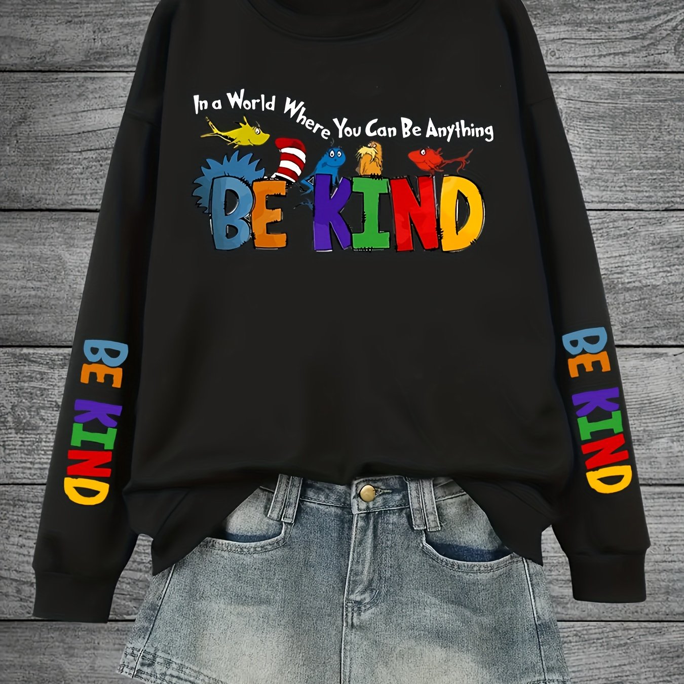 Plus Size Women's Casual Print Pullover Sweatshirt Long Sleeve Crew Neck
