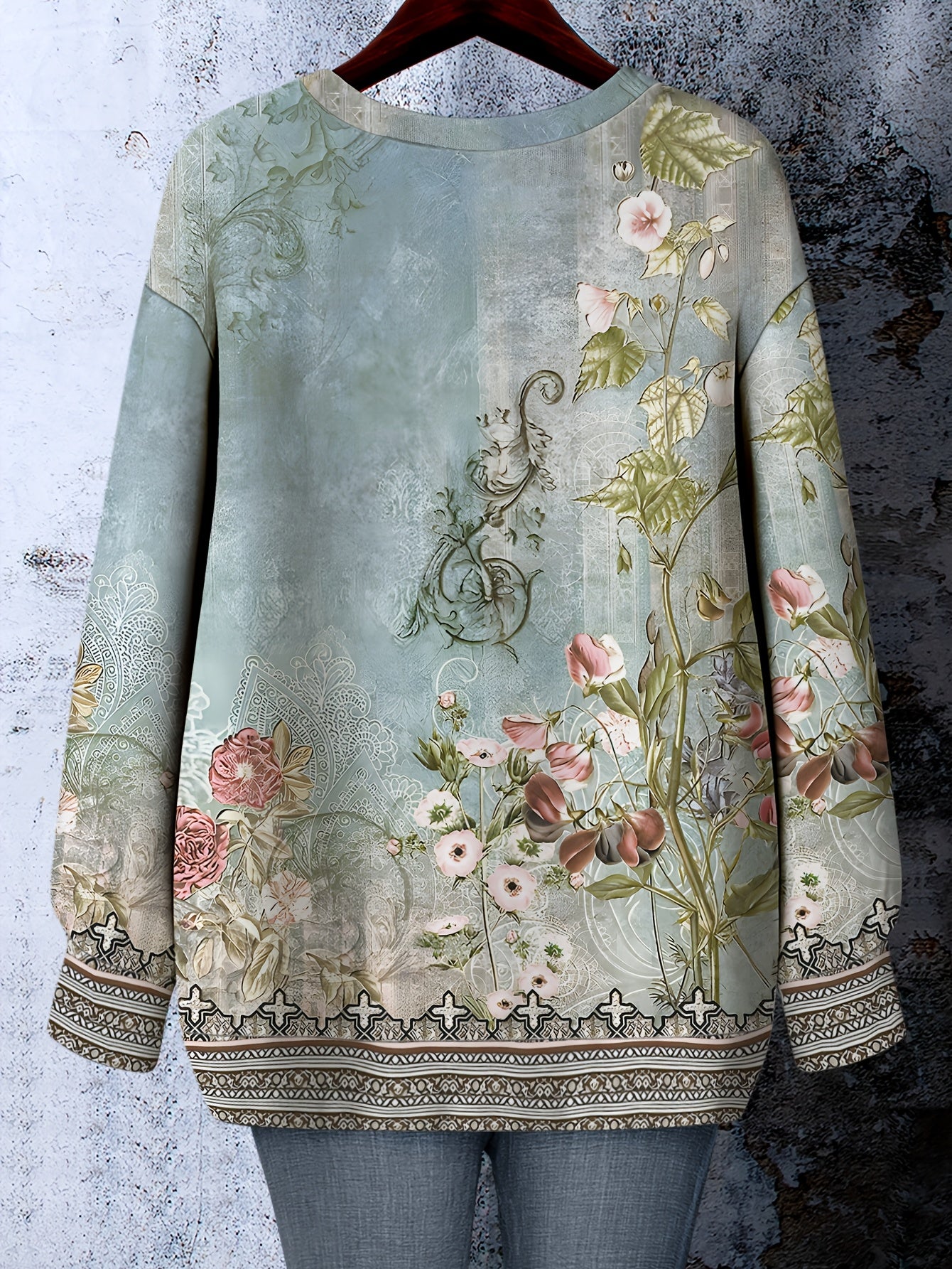 Plus Size Women's Crew Neck Sweatshirt Polyester Knit Floral Embroidery All-Season