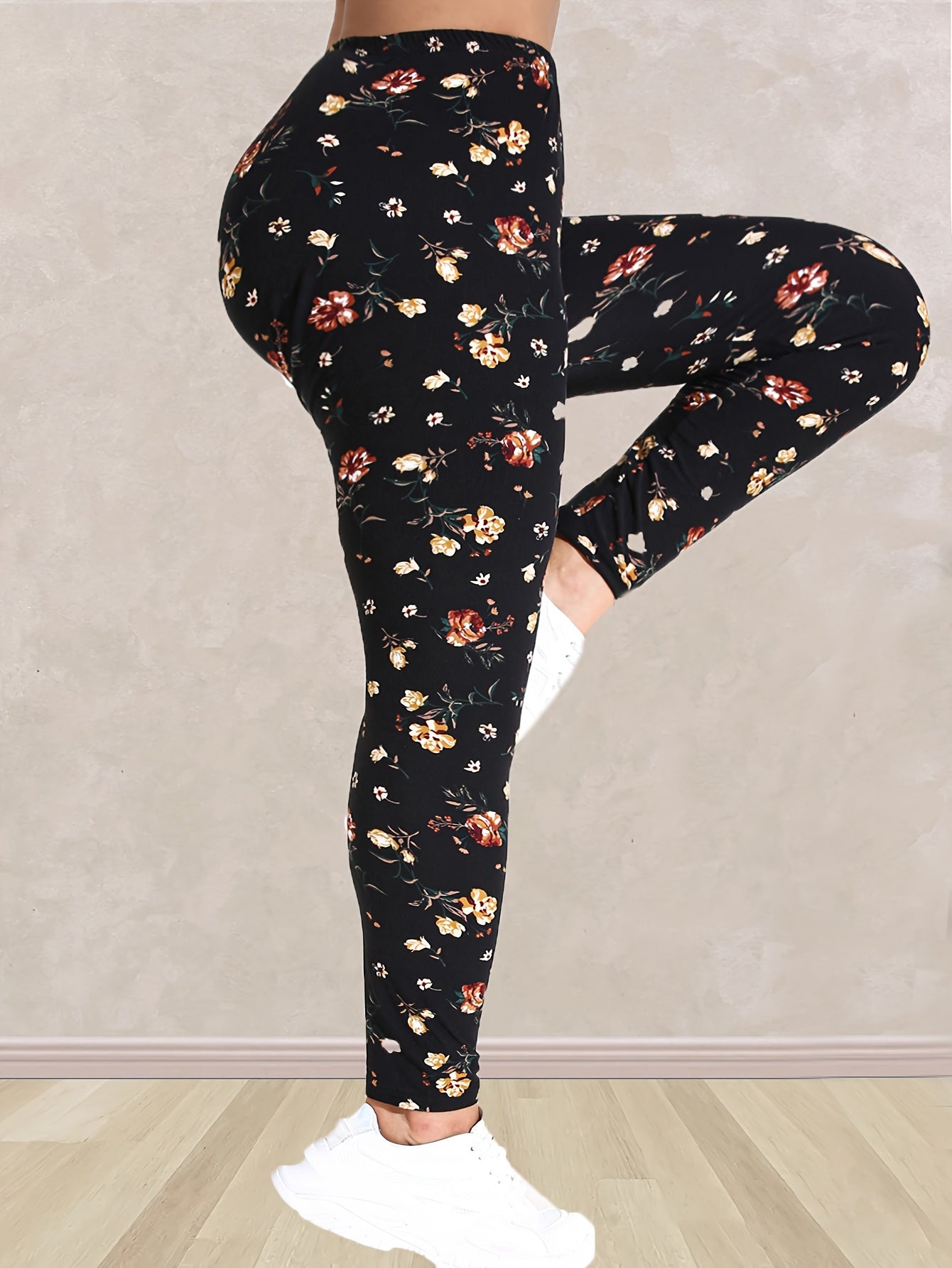 Plus Size Women's Floral Print High-Waisted Yoga Leggings | 7/8 Length Compression Pants