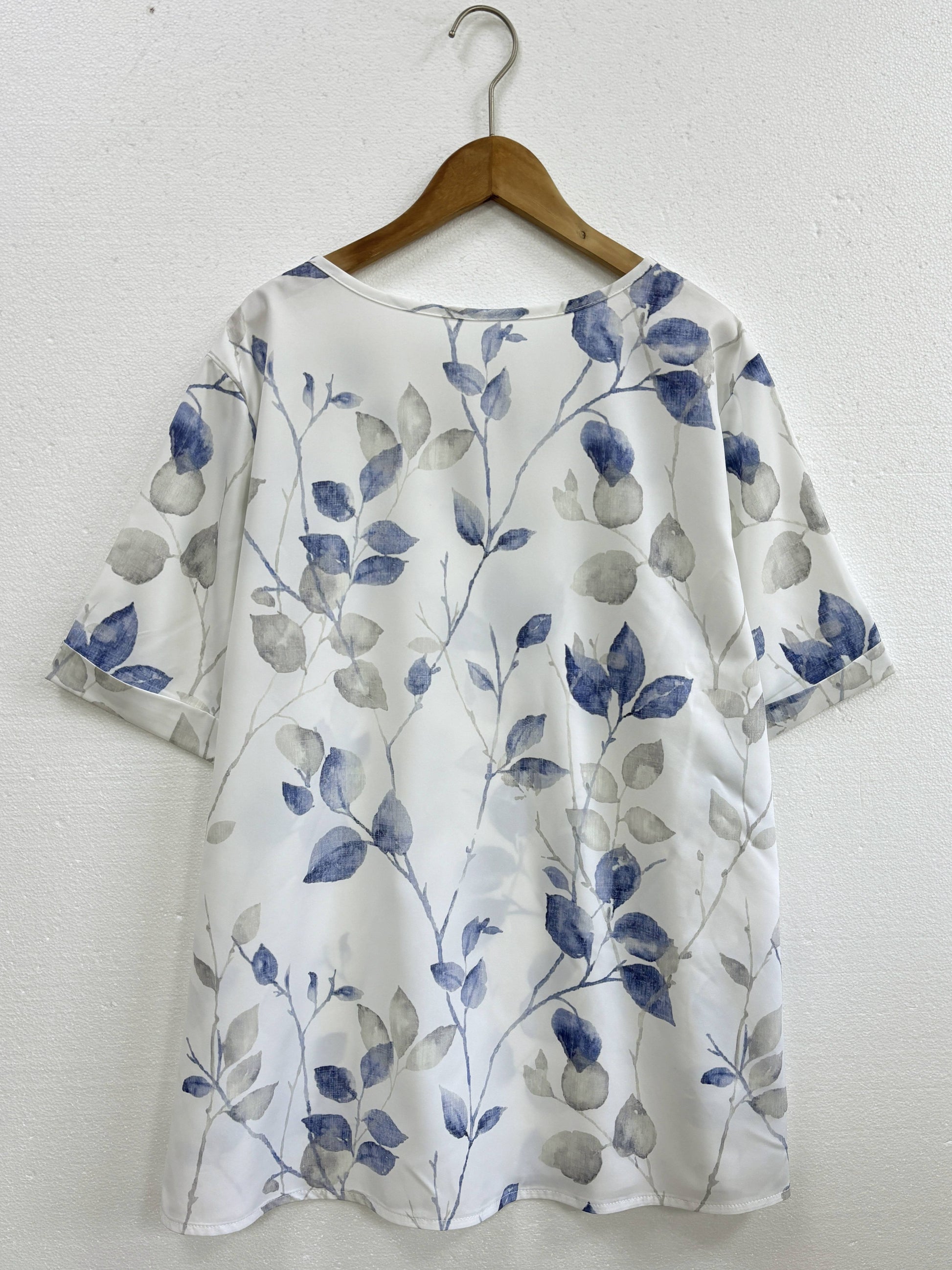 Plus Size Women's Floral Print Short Sleeve Blouse Polyester Spring Summer