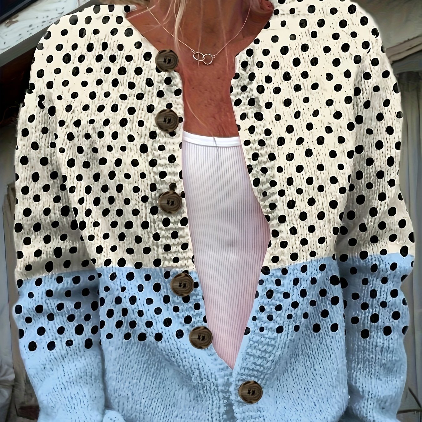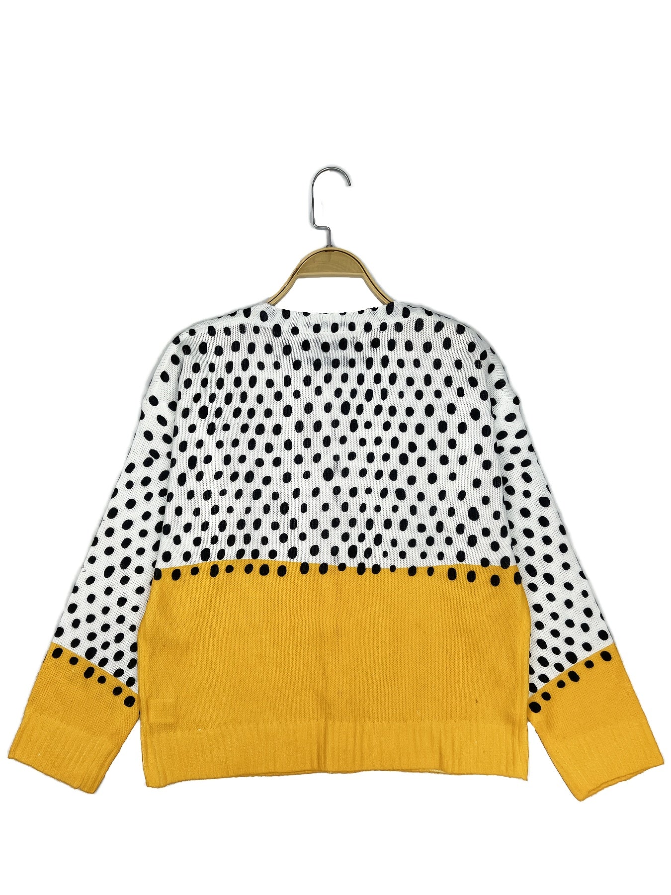 Plus-Size Women's Lightweight Cardigan Long Sleeve Polka Dots Yellow Black