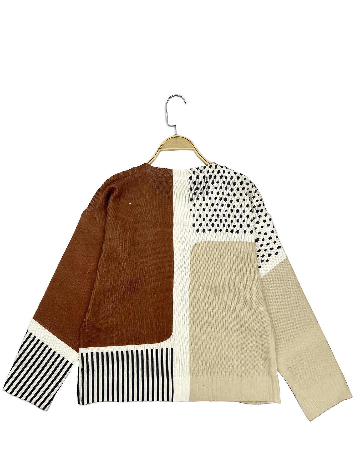 Plus-Size Women's Lightweight Cardigan Spring Autumn Open Front Sweater Brown White Beige