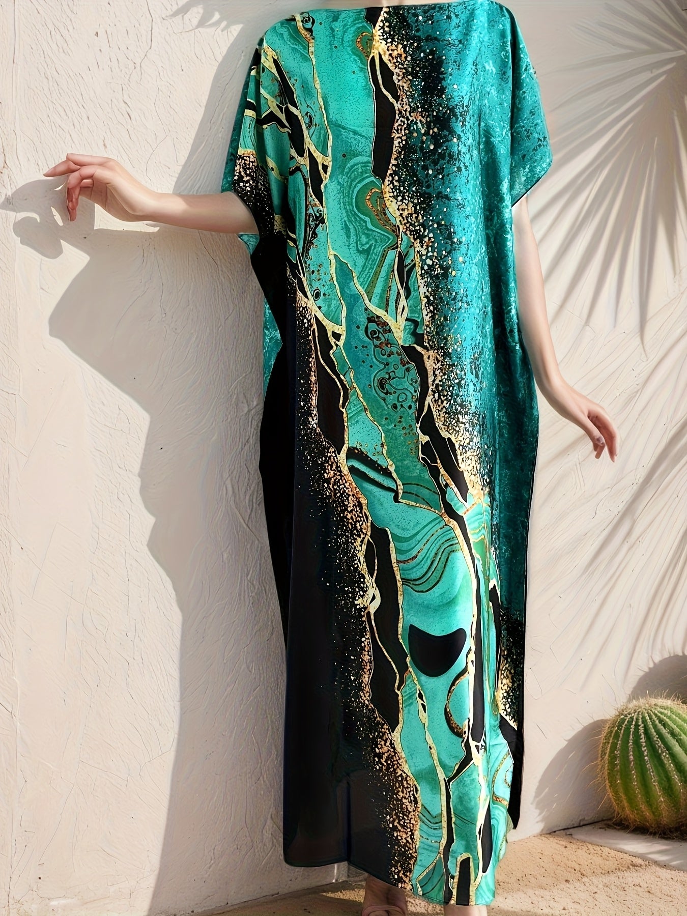 Plus Size Women's Maxi Dress Flowy Formal Casual Emerald Green Geometric Print