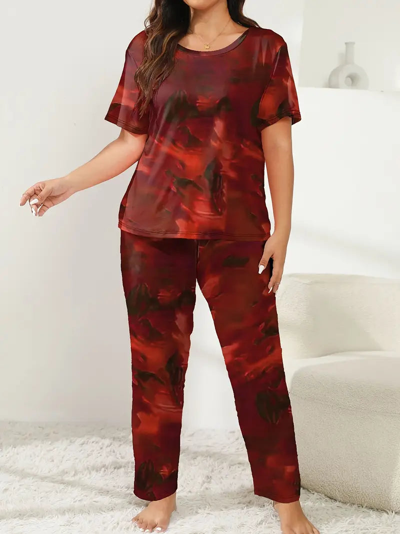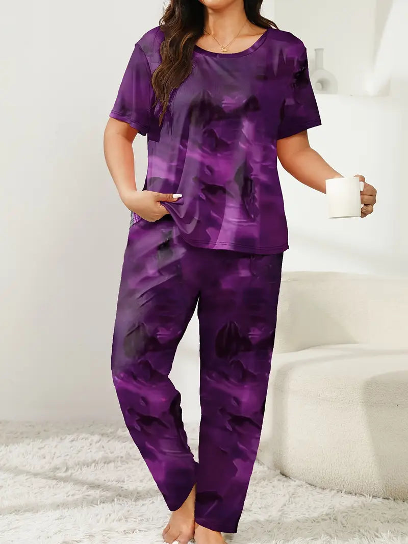 Plus Size Women's Pajama Set Polyester Knit All-Season Short Sleeve Top Long Pants Sleepwear