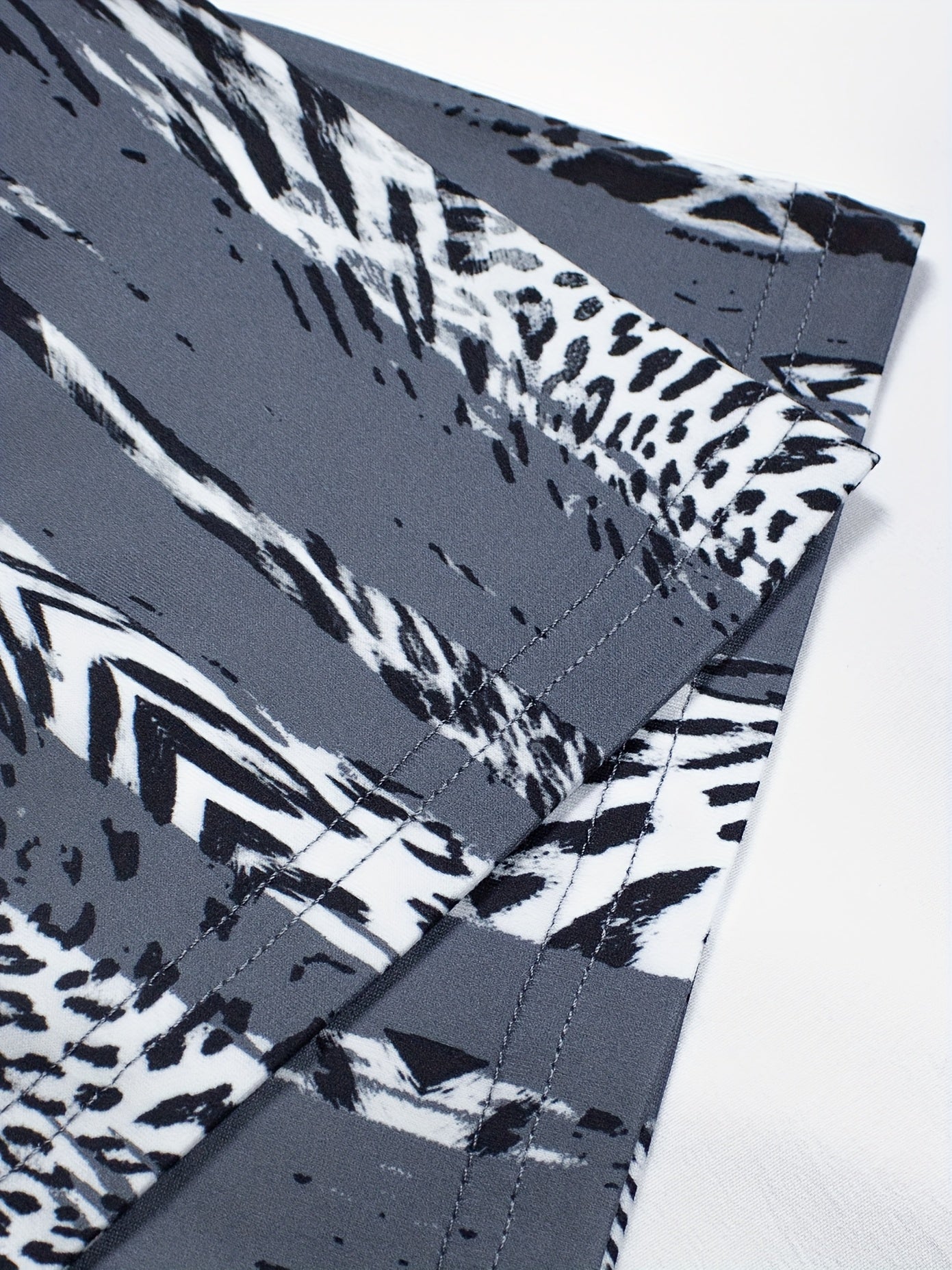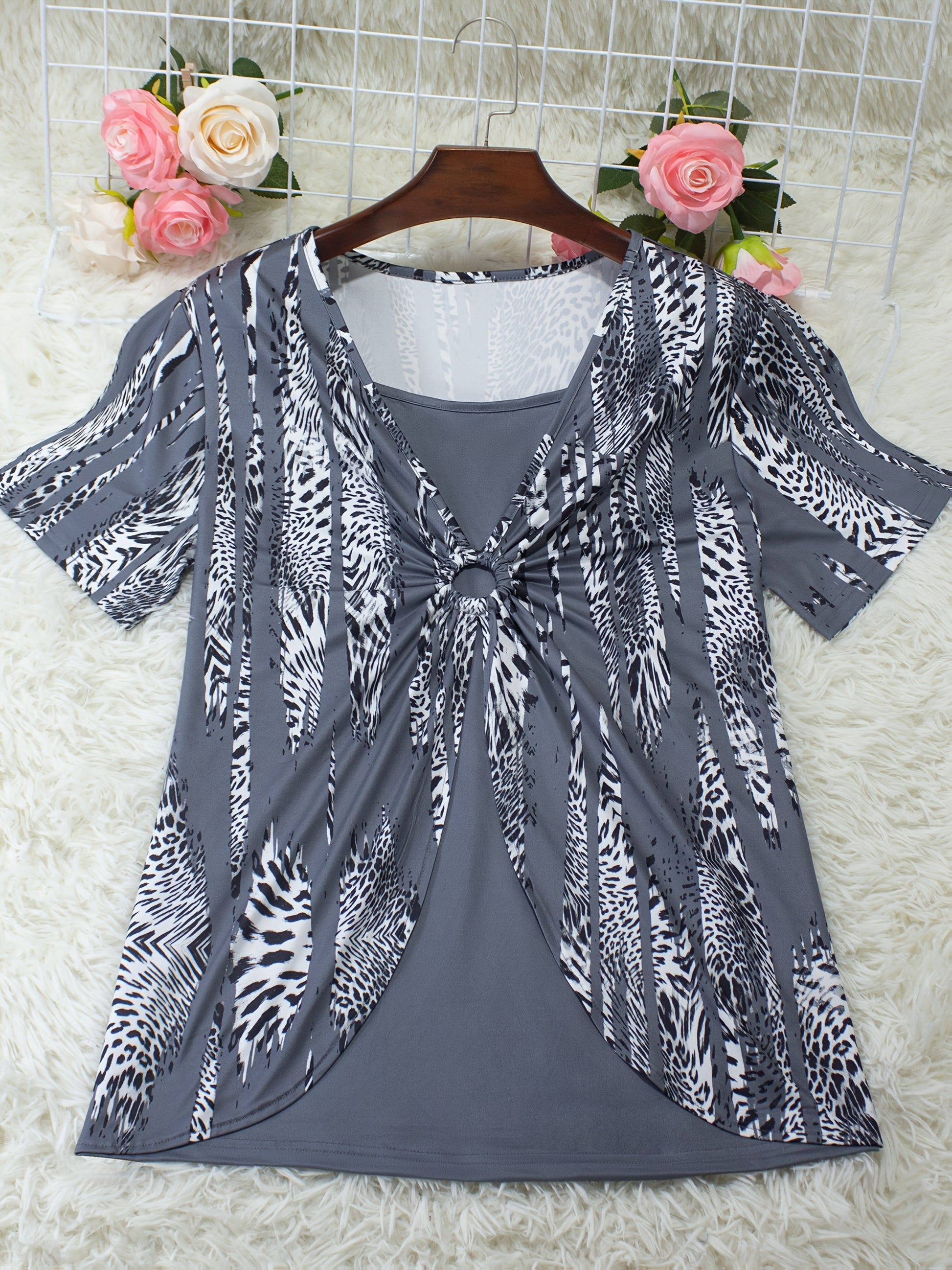 Plus Size Women's Short Sleeve T-Shirt Ethnic Print Faux Two-Piece Bow Ring