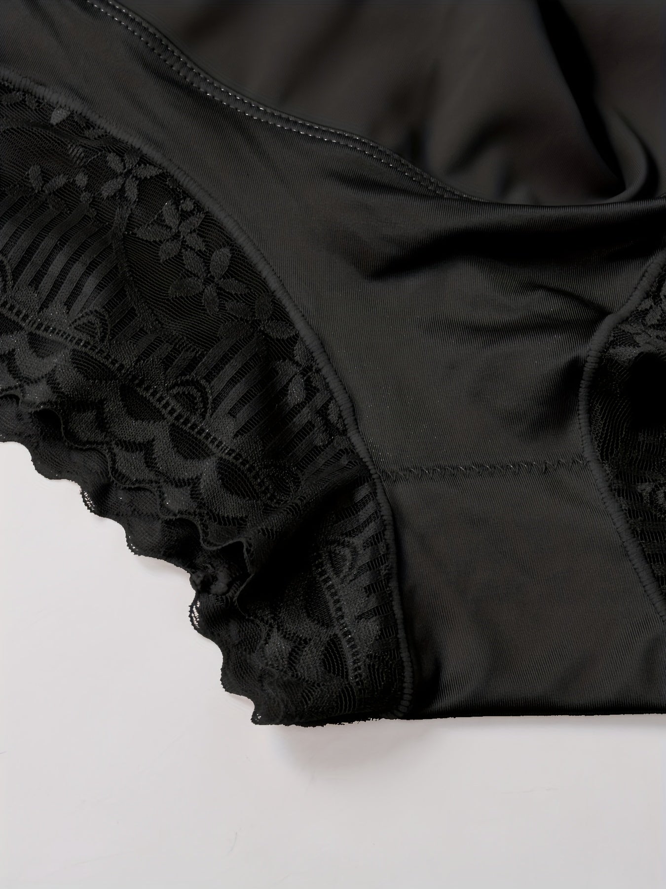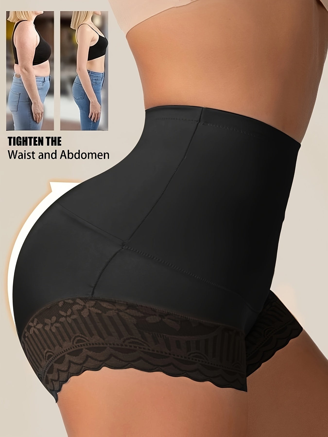 Plus Size Women's Silky Lace Trim High-Waist Briefs Lightweight Abdominal Control