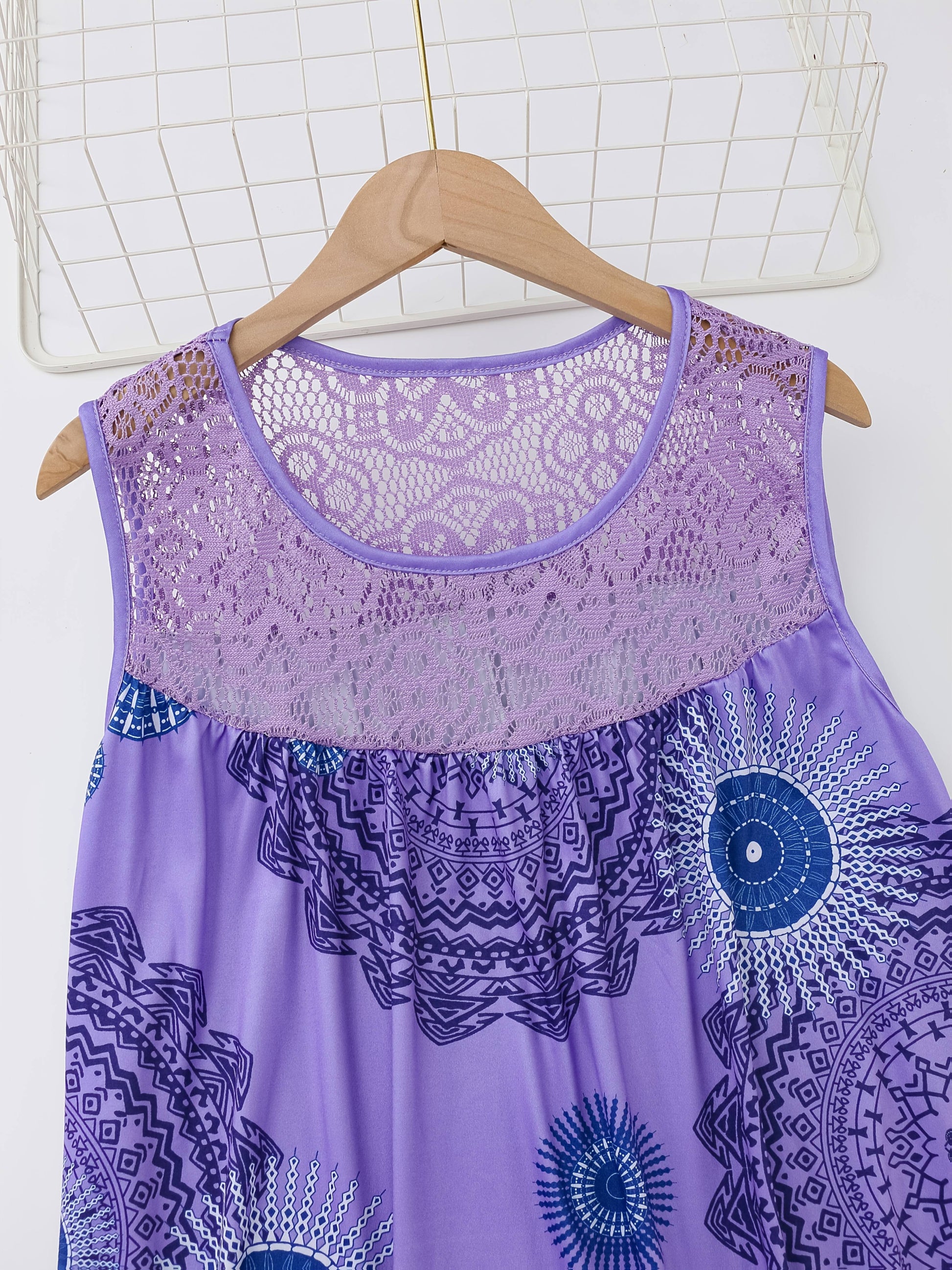 Plus Size Women's Sleeveless Nightgown Blue Purple Paisley Lounge Sleepwear