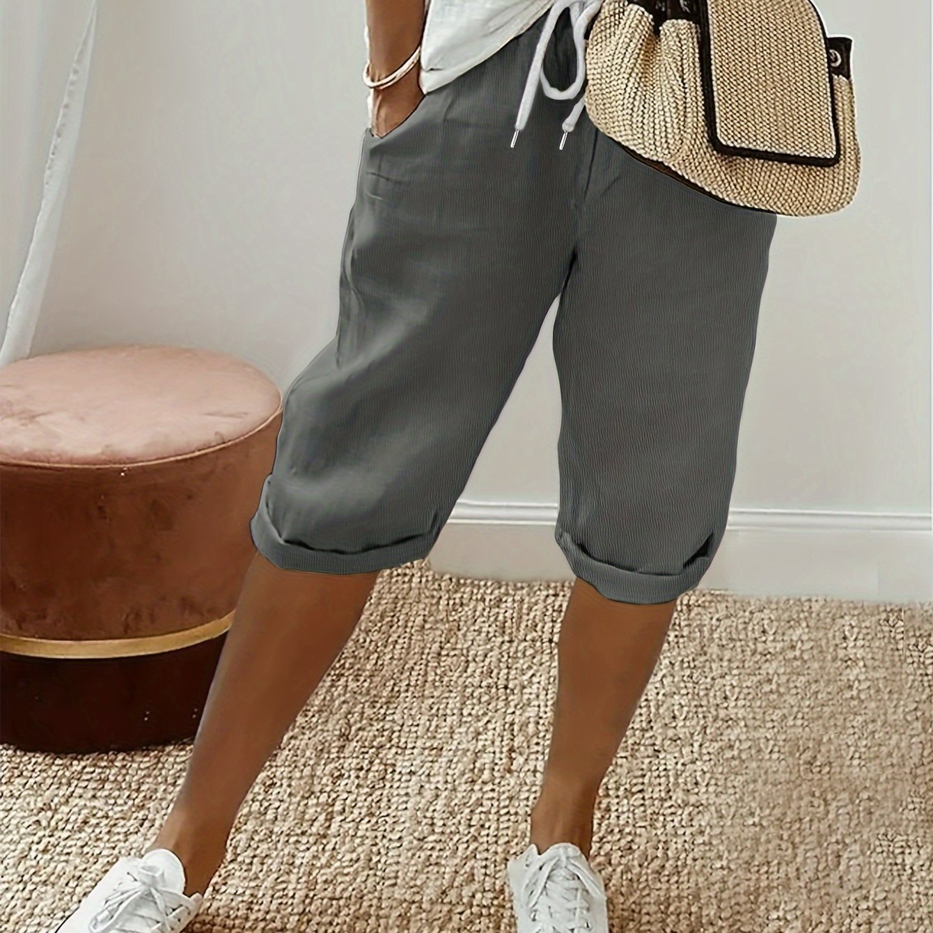 Plus Size Women’s Solid Drawstring Deck Pants Casual Elastic Waist Summer