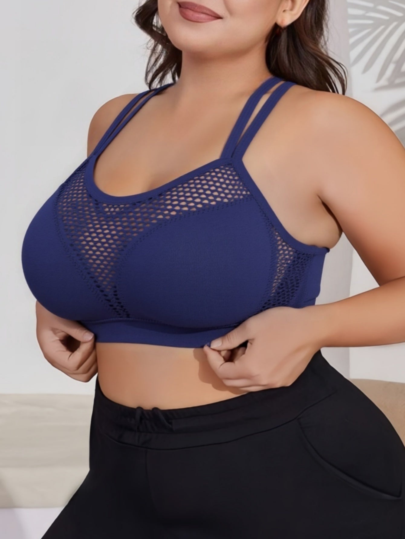 Plus Size Women's Sports Bra Adjustable Straps Mesh Front Removable Pads Workout Fitness