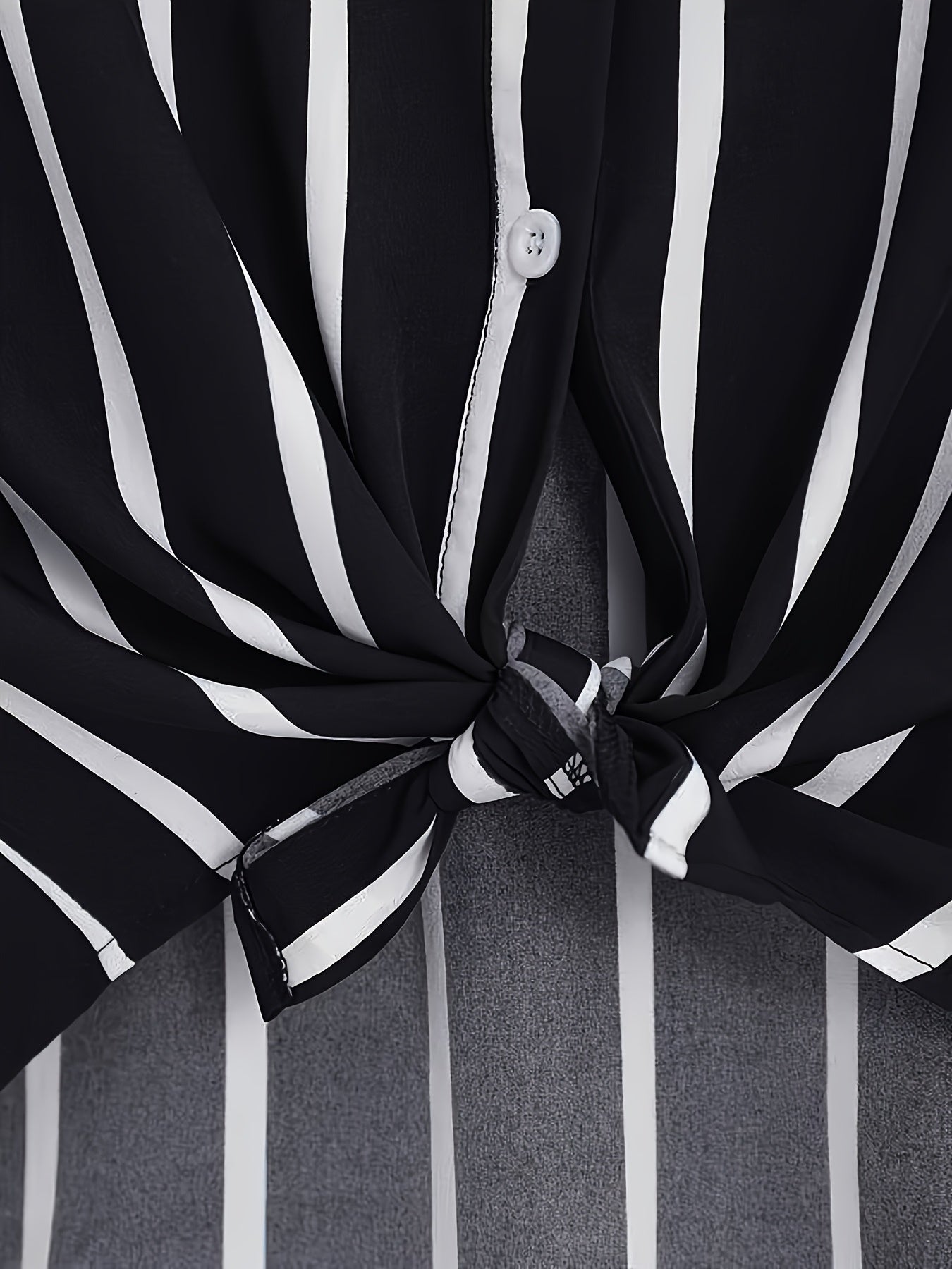 Plus Size Women's Striped Short Sleeve Shirt Polyester Casual Spring Summer