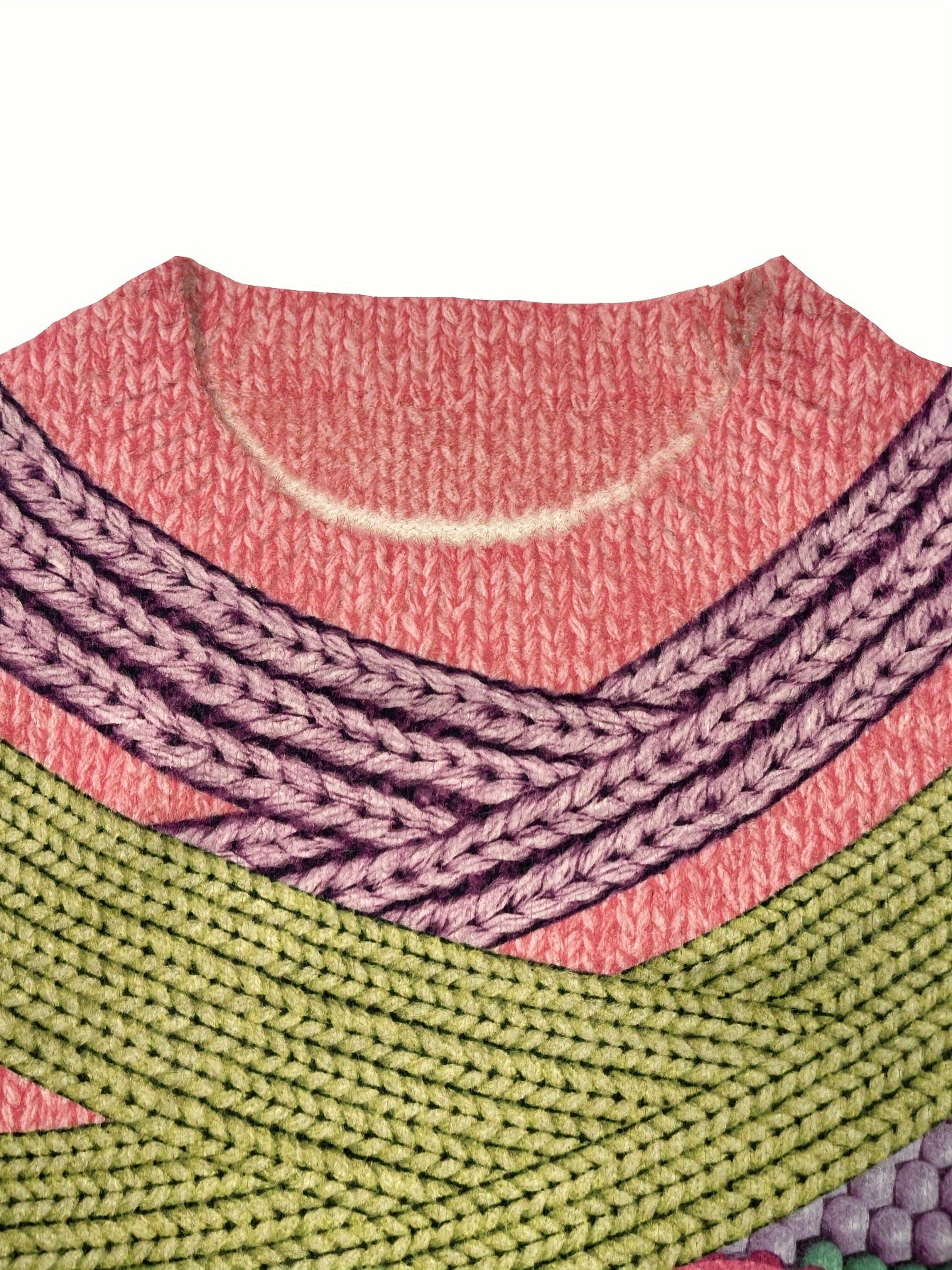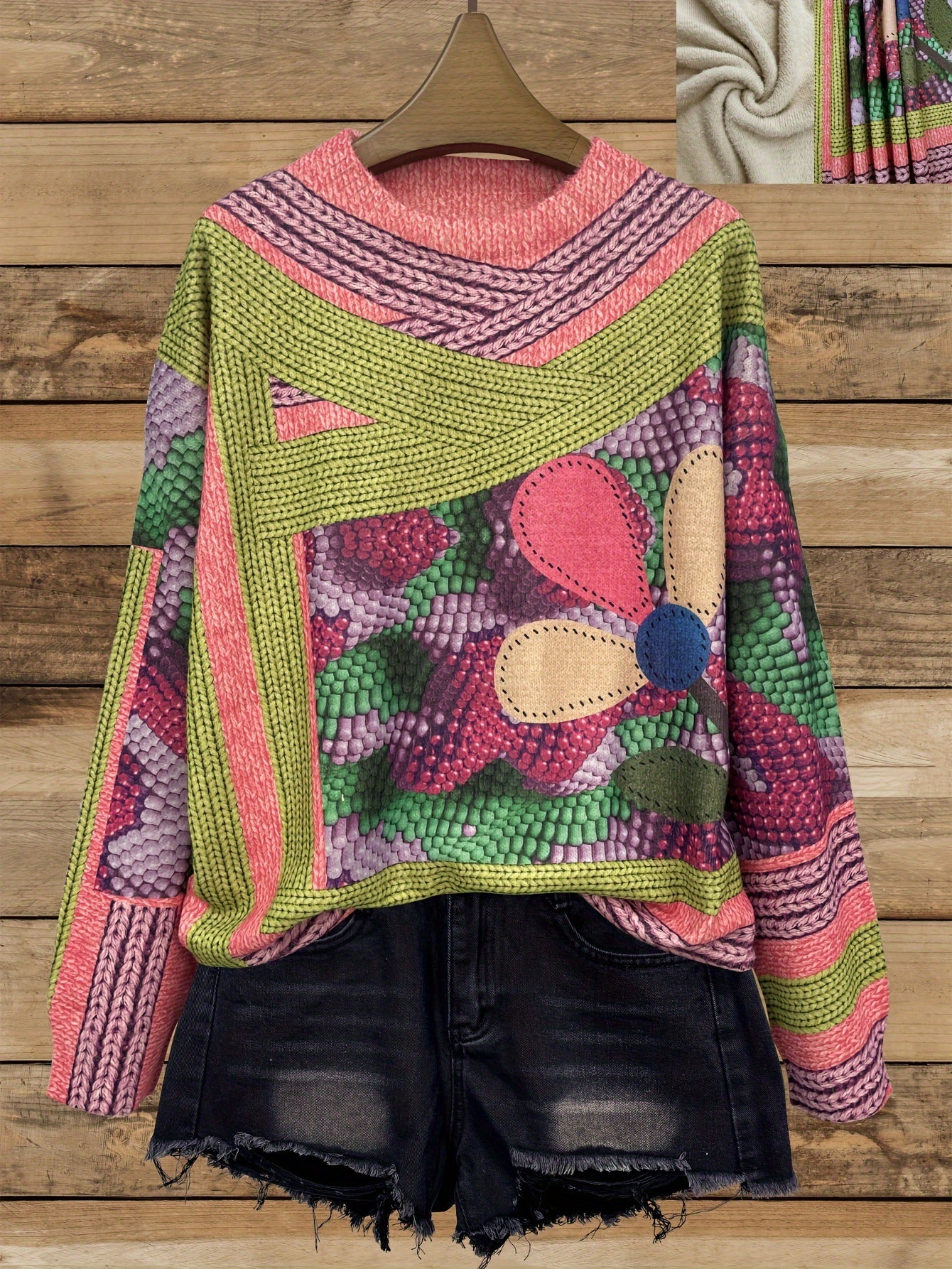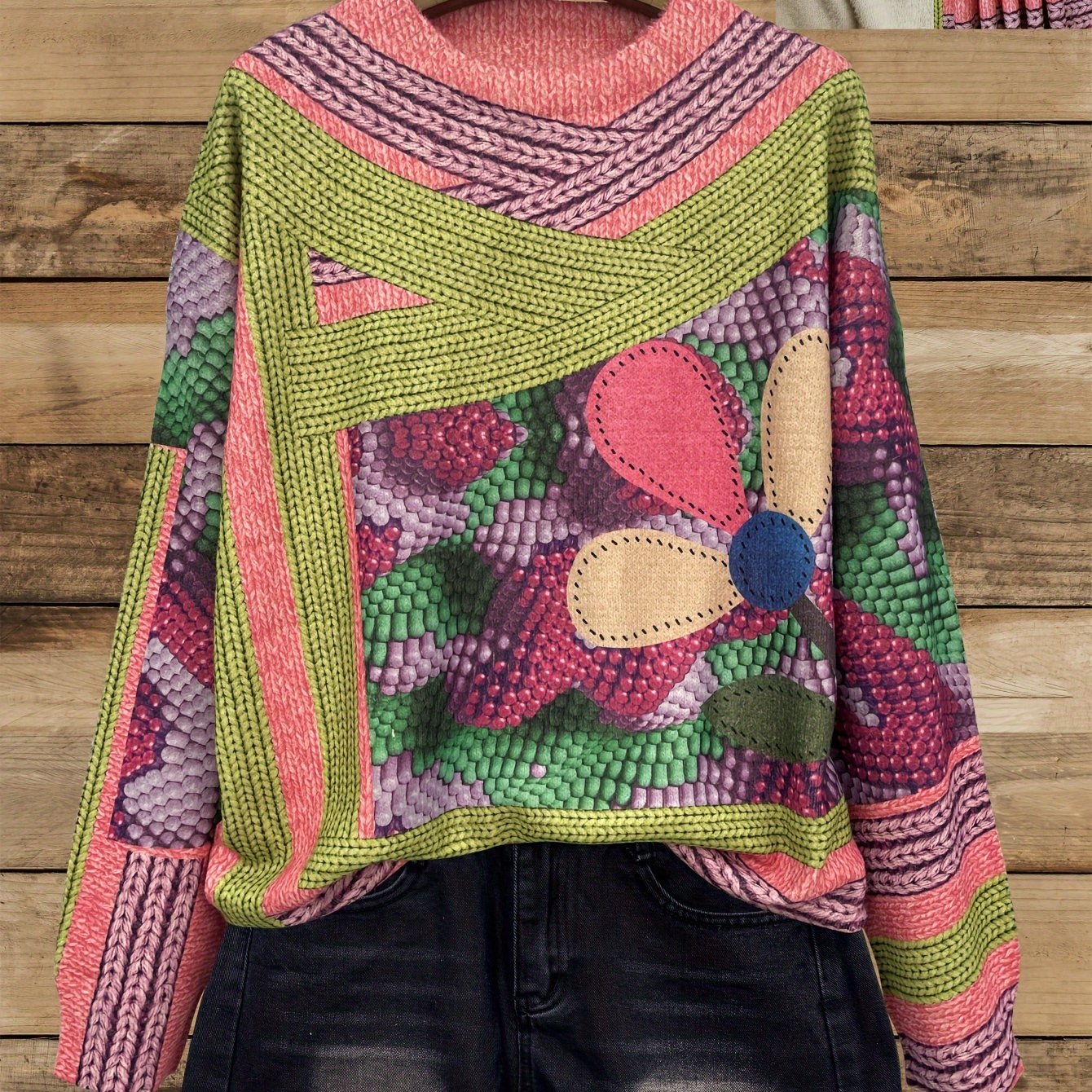 Plus Size Women's Thick Knit Sweater All-Over Print Casual Long Sleeve Pullover