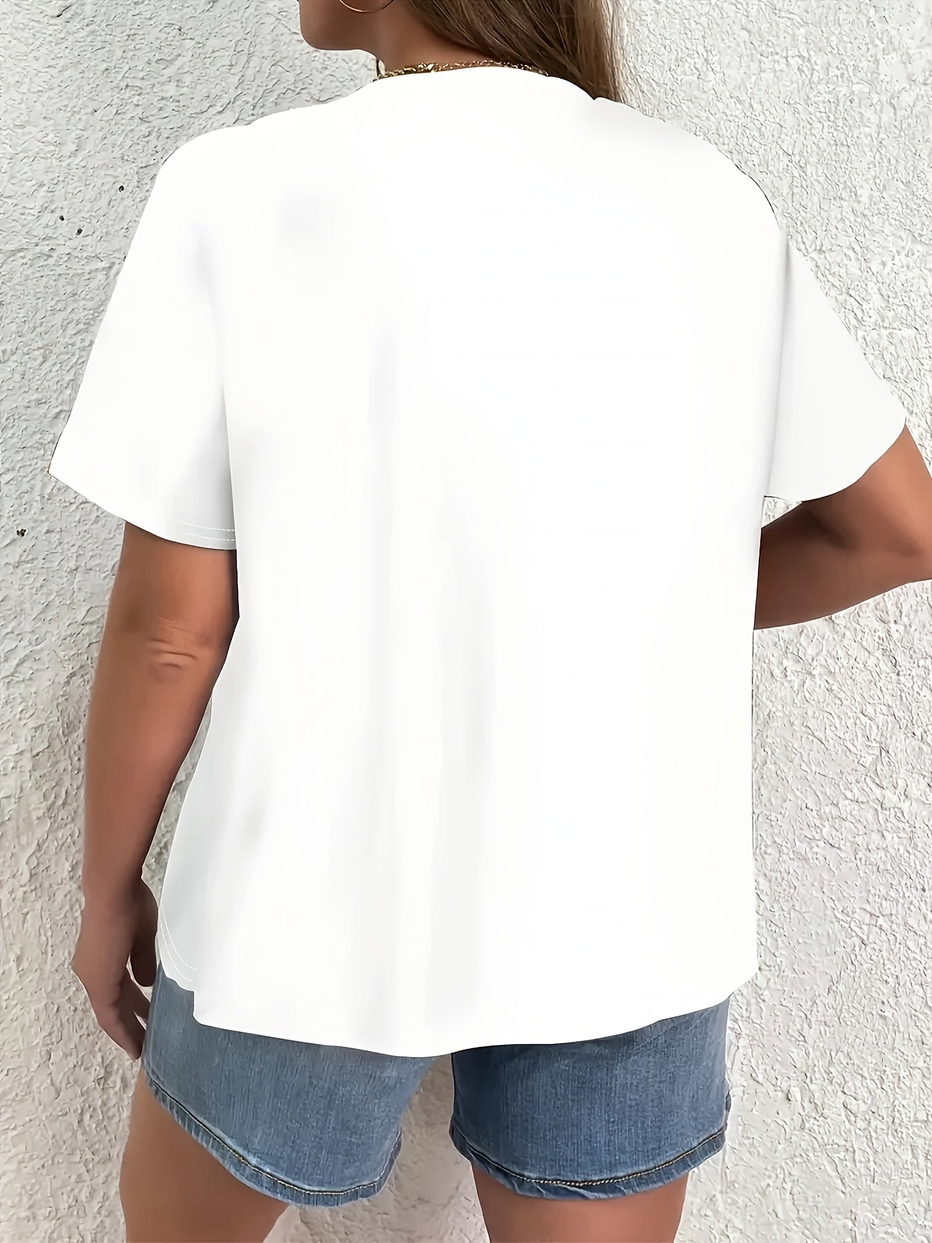 Plus Size Women's V-Neck Floral Print T-Shirt Lightweight Short Sleeve White Purple Black