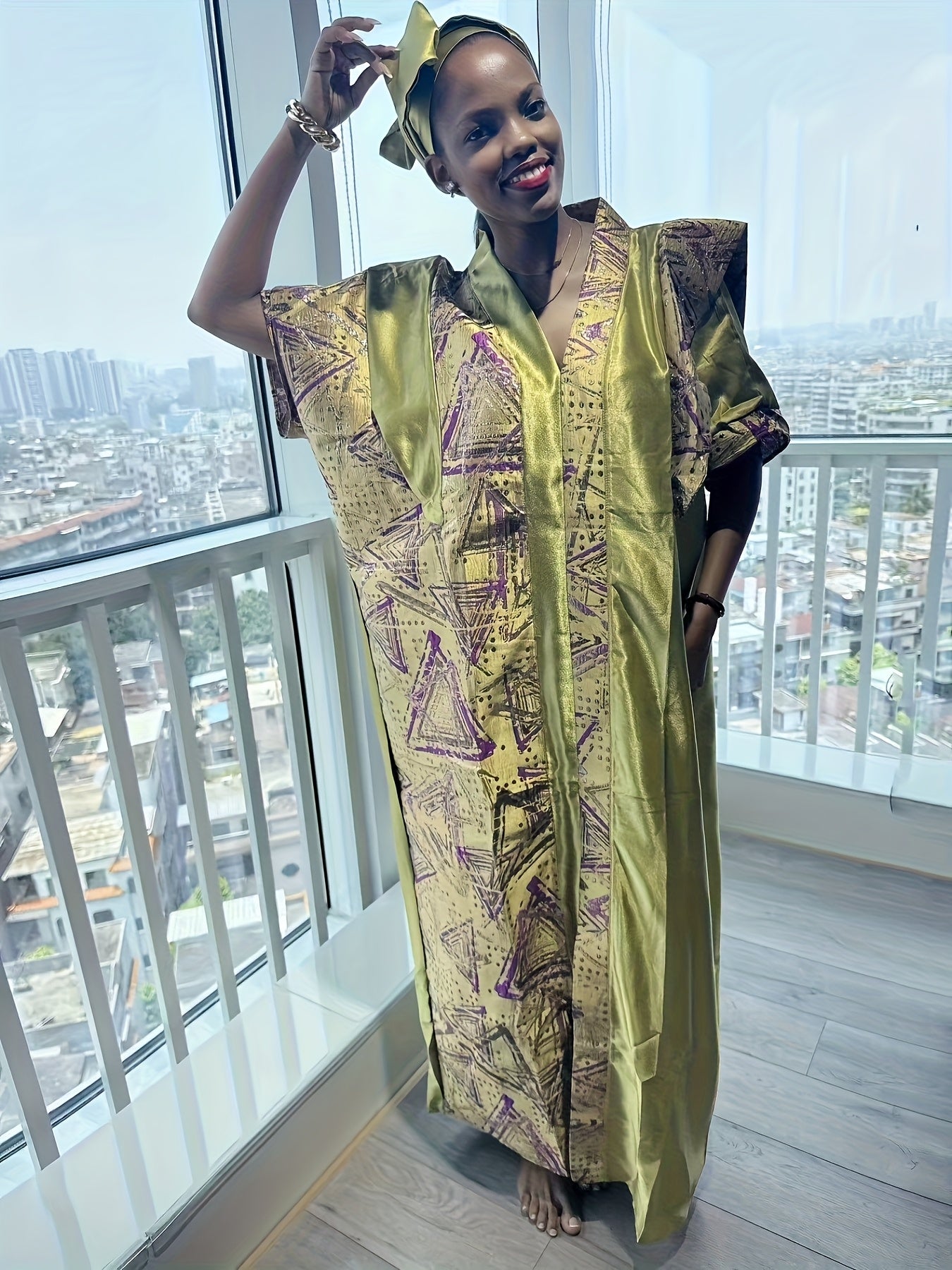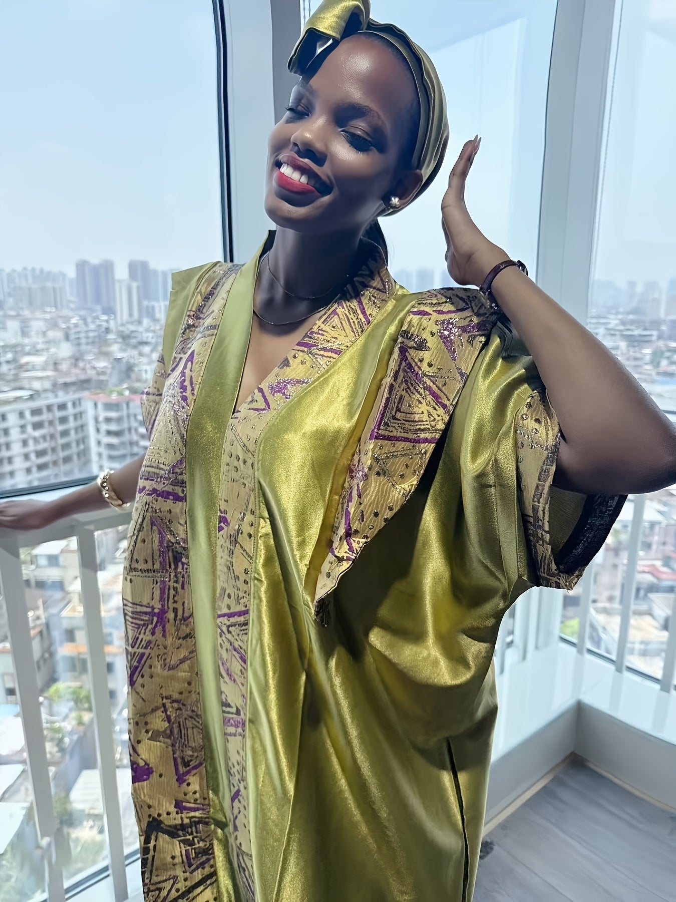 Plus Size Women's V-Neck Long Dress Color Block Asymmetrical Hem Lightweight Dress