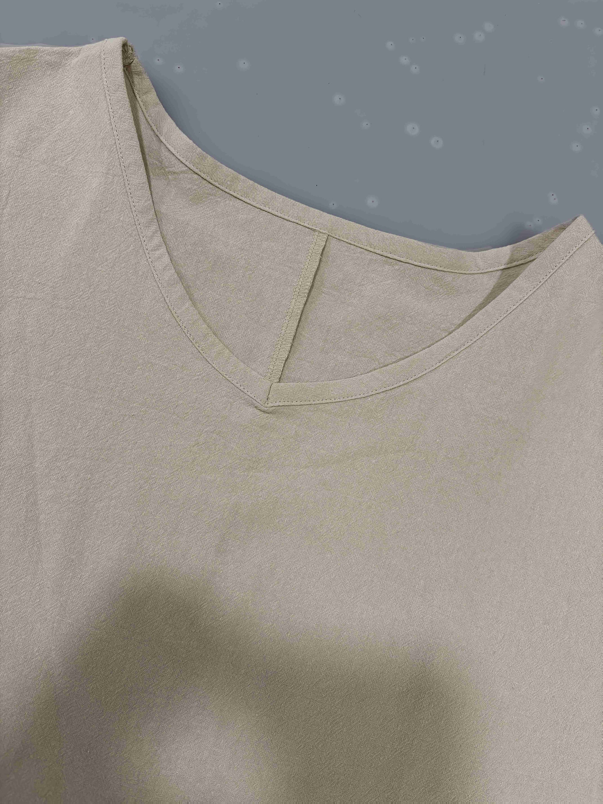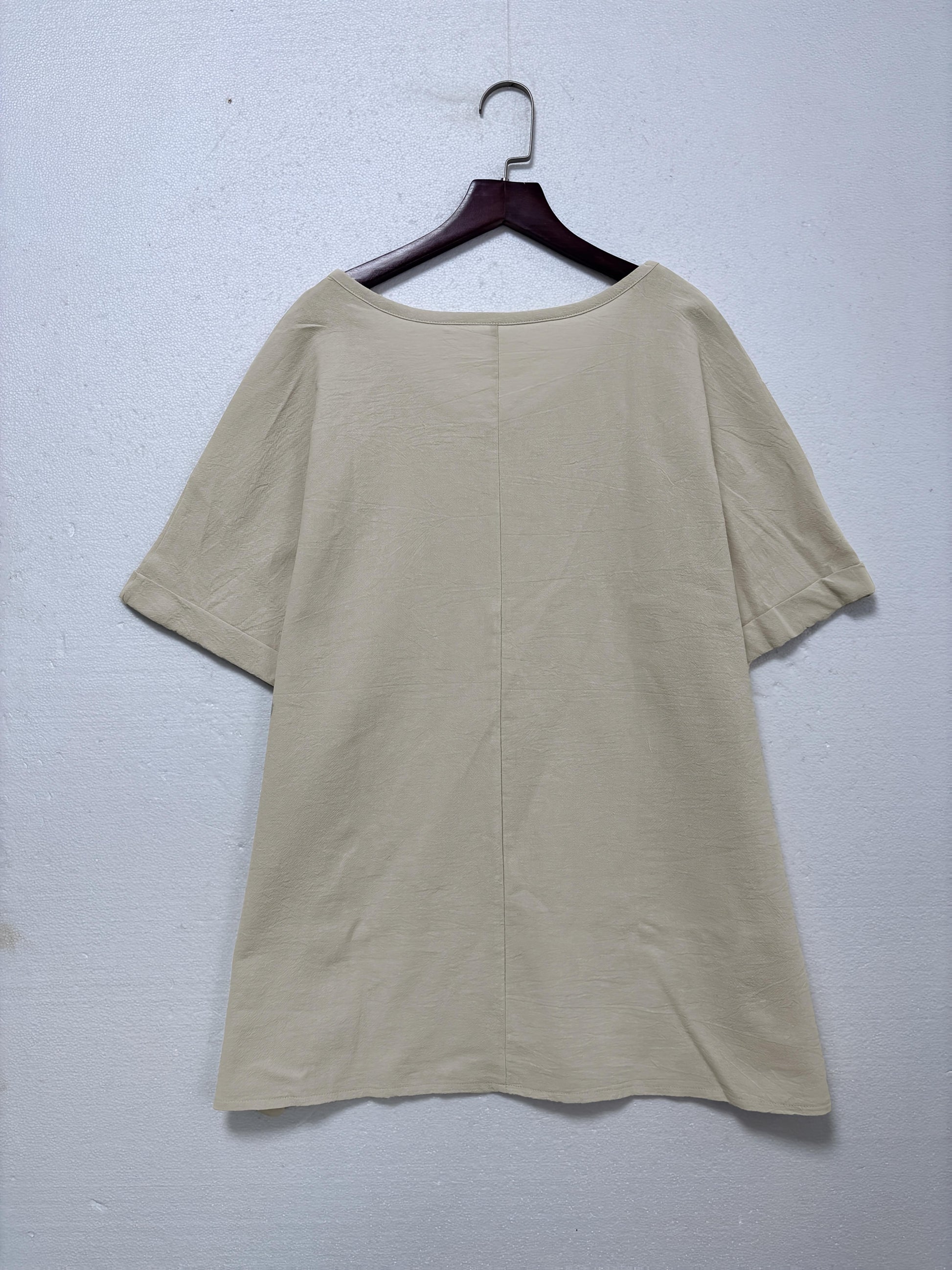 Plus Size Women's V-Neck Loose Fit Casual Blouse Breathable Solid Color Summer Shirt