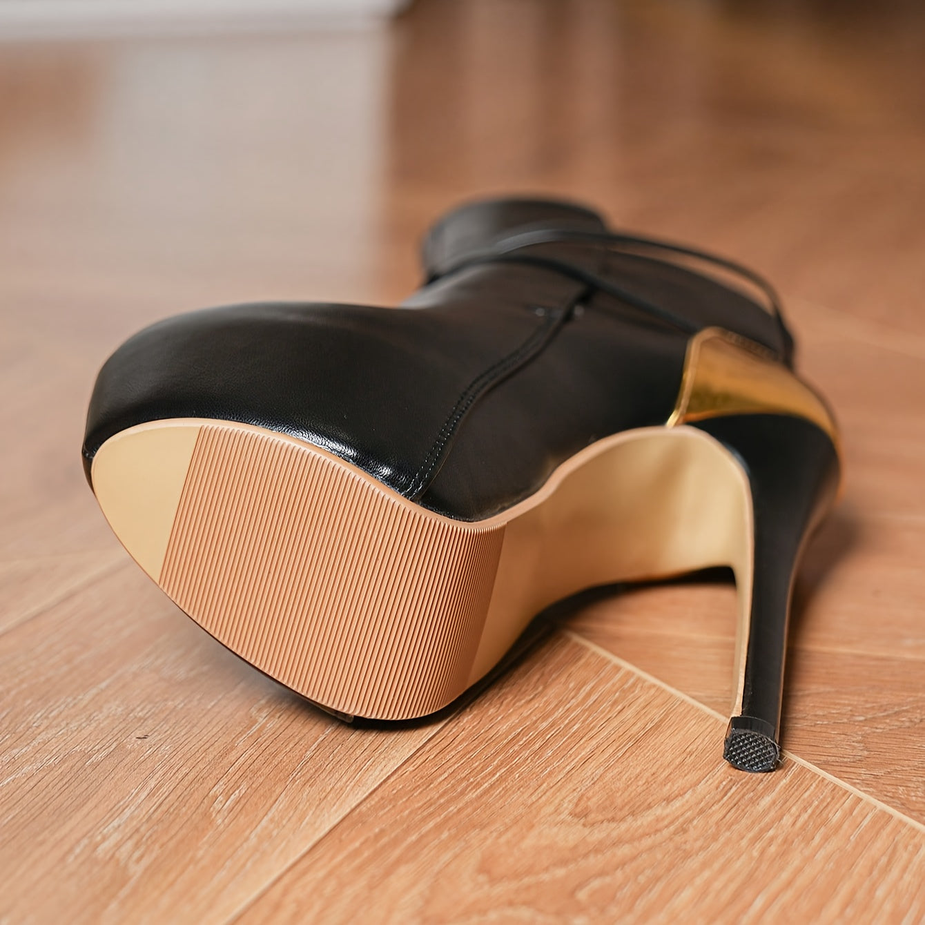 Plus Size Women Stiletto Heels PU Cover Platform Ankle Boots Red Black