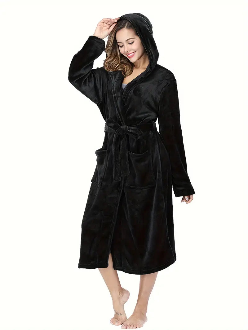 Women's Plush Hooded Nightgown Long Sleeve Belt Pockets Fall Winter Polyester